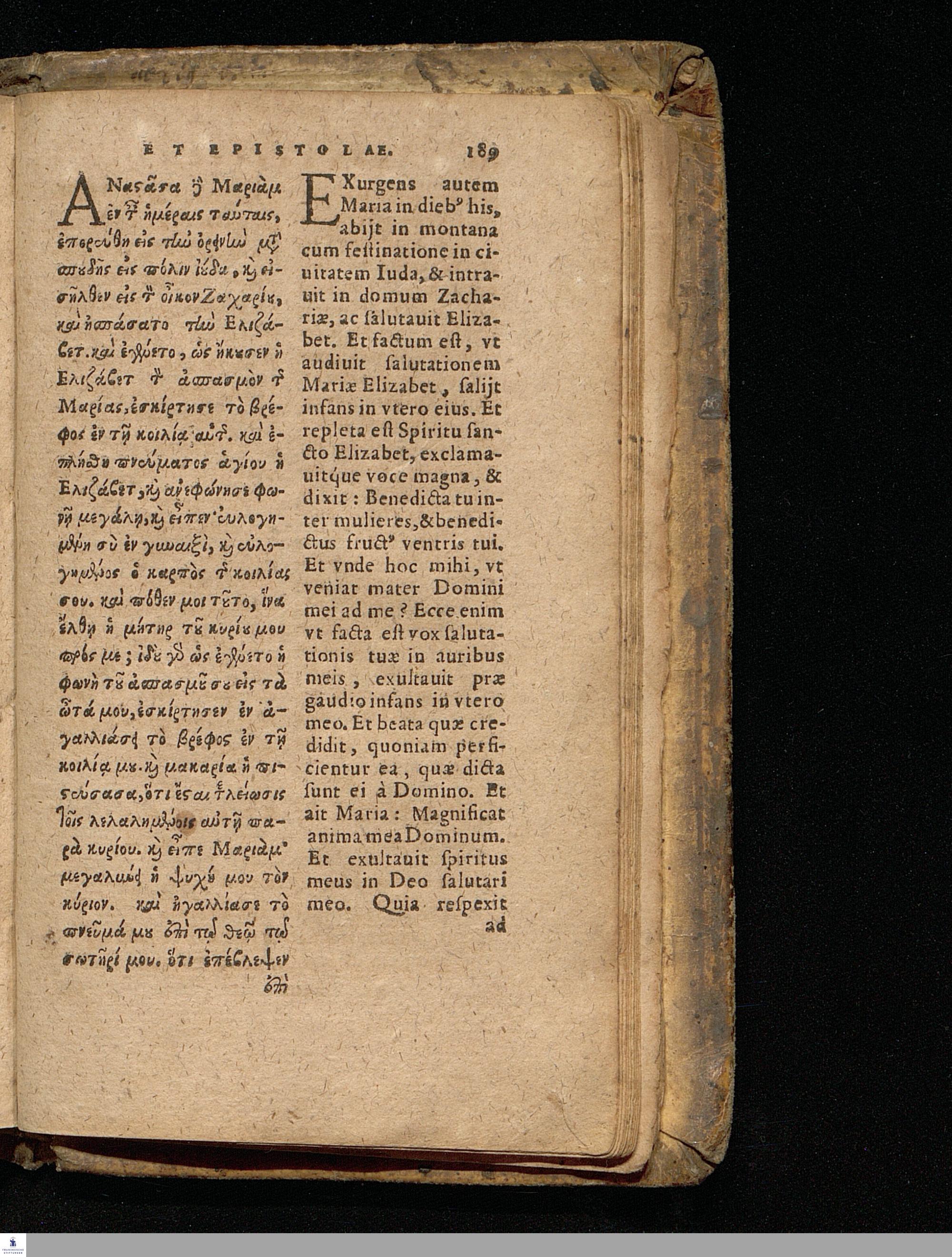 EUANGELIA TE || KAI EPISTOLAI TŌN KY-|| riakōn kaì heortastikōn hēmerōn hellenistì || kaì romaistì.||metà tōn distíchōn kyriakōn Christophórou Pelárgou hellenistì.|| EVANGELIA ET || EPISTOLAE DOMINI-||CORVM AC FESTORVM || dierum Græcè & Latinè.|| Vna cum distichis Dominicalibus Ioannis Stige-||lij, & festiualibus Bernhardi Bomgardij, correctius || quàm hactenus expressa.||
