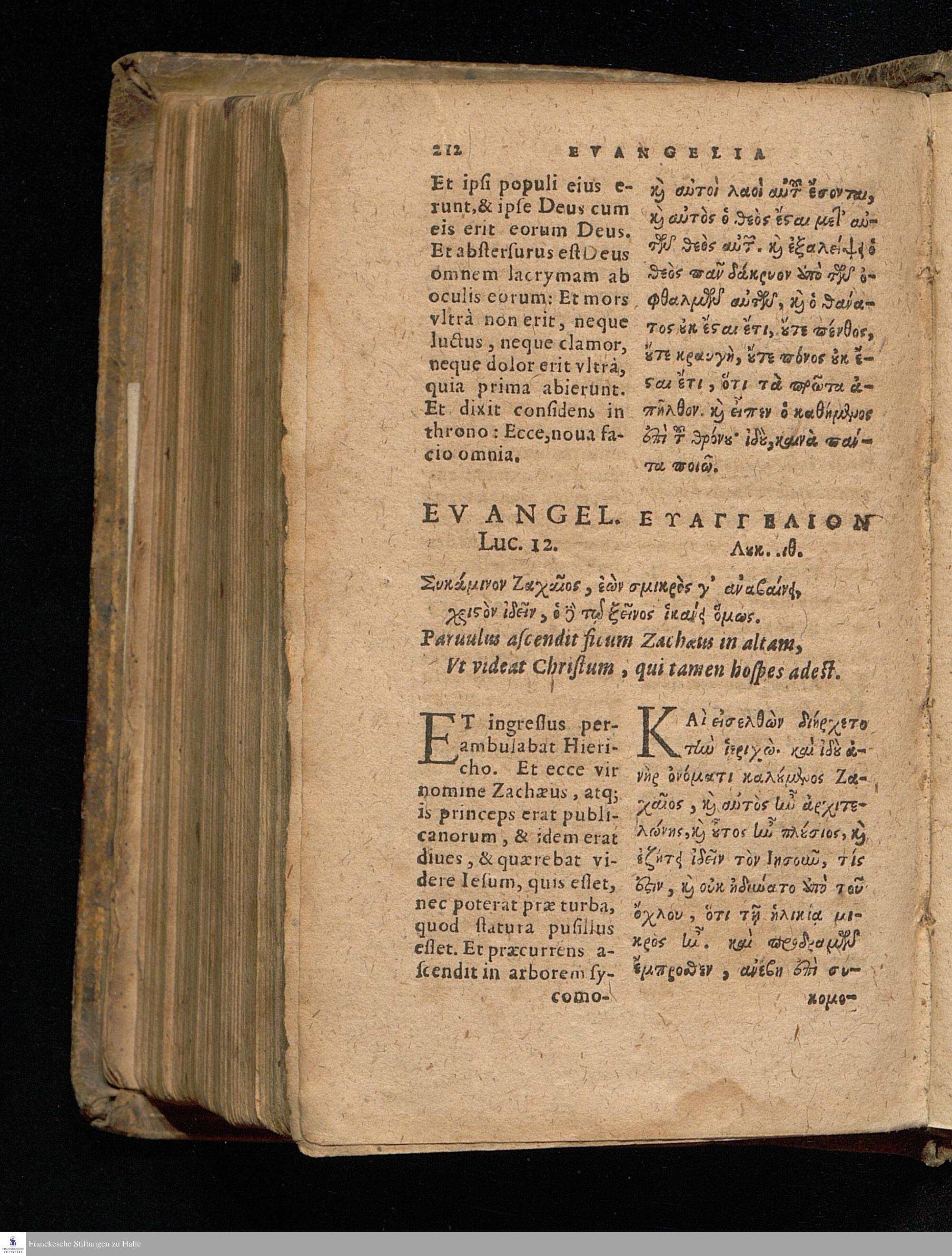 EUANGELIA TE || KAI EPISTOLAI TŌN KY-|| riakōn kaì heortastikōn hēmerōn hellenistì || kaì romaistì.||metà tōn distíchōn kyriakōn Christophórou Pelárgou hellenistì.|| EVANGELIA ET || EPISTOLAE DOMINI-||CORVM AC FESTORVM || dierum Græcè & Latinè.|| Vna cum distichis Dominicalibus Ioannis Stige-||lij, & festiualibus Bernhardi Bomgardij, correctius || quàm hactenus expressa.||