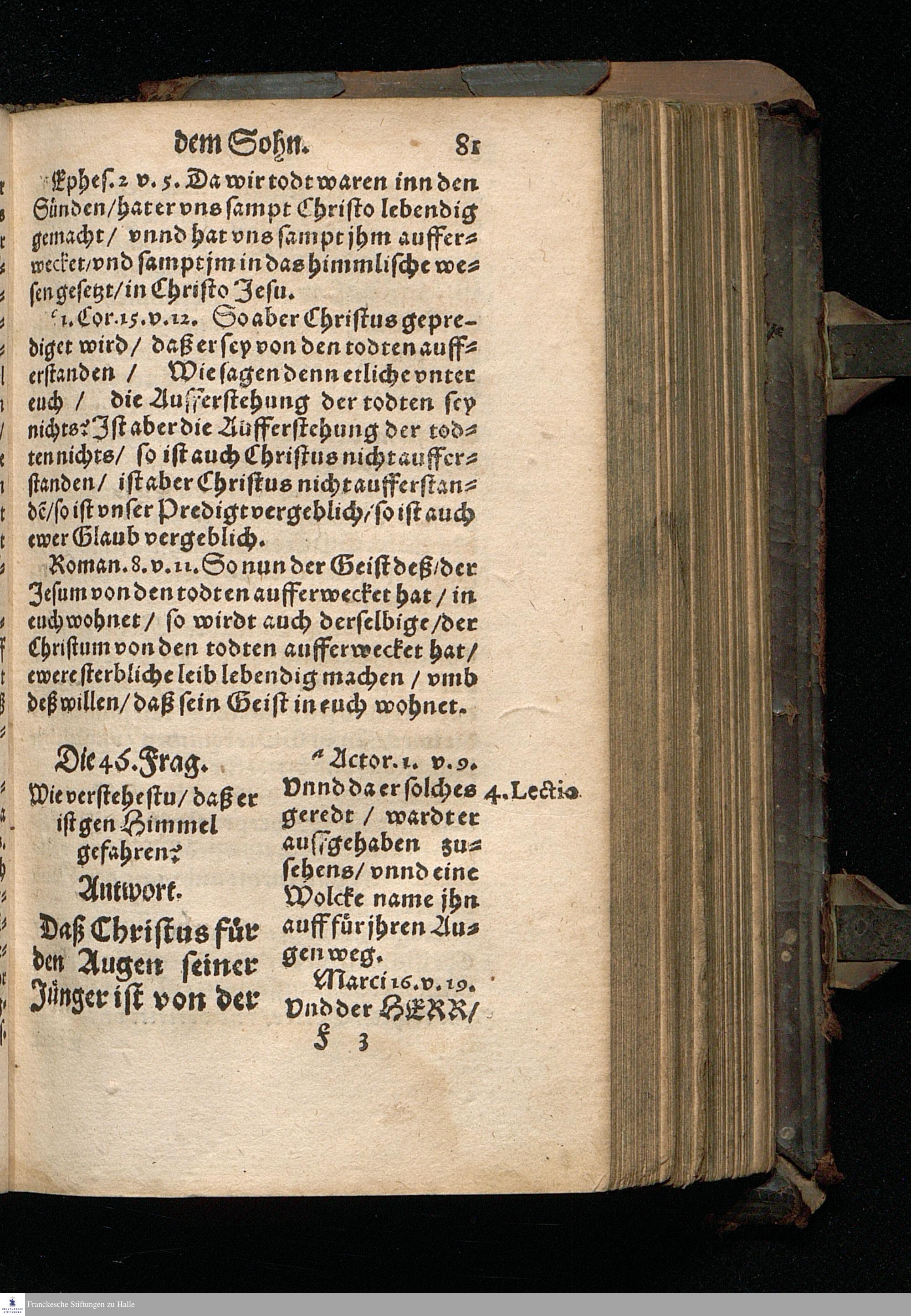 Catechismus || Oder || kurtzer vnder=||richt Christlicher Lehr/ || Wie der in der Chur vnd Fürstli=||chen Pfaltz Kirchen vnnd Schulen ge=||trieben wirdt/ sampt den Kirchen Ceremonien/ Ge=||bet vnd gantzen vollkom[m]enen Zeugnussen Bibli=||scher Schrifft/ wie die Capitel vnd Versickel zuuor || auff dem rand allein mit der Ziffer seynd ver=||zeichnet gewesen. || Jtem/ || Antwort auff etlicher Theologen || Censur vber die am rand deß Heydelber=||gischen Catechismi/ auß heiliger Schrifft || angezogene Zeugnusse. || Jtem/ || Antwort vnnd Gegenfragen auff sechs || fragen vom H. Nachtmal. || Jtem/ || Artickel/ in denen die Euangelischen Kir=||chen im handel deß Abendmals einig oder streitig sind/ Gestelt || Durch || D. Zachariam Vrsinvm. ||