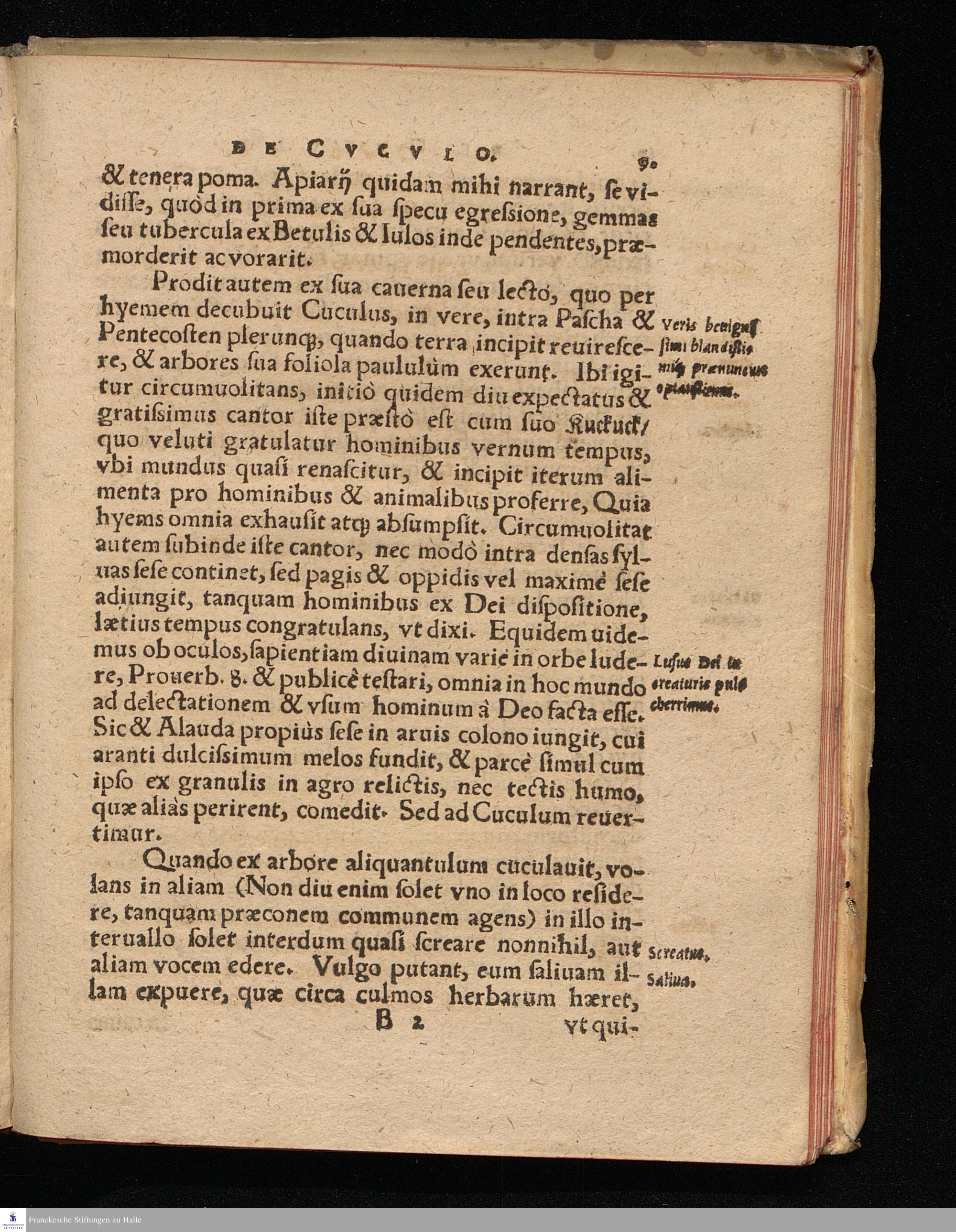 DE || CVCVLO: || VMBRA NOCTVRNA: || CAPELLA COELESTI: || BVBONE & || MARGARITA. || Historiæ & obseruationes || quædam. || IOHAN. WIGAND. D. || Episc: Pomezan. || Ambrosius || Creatorem suum omnis creatura || collaudat. ||