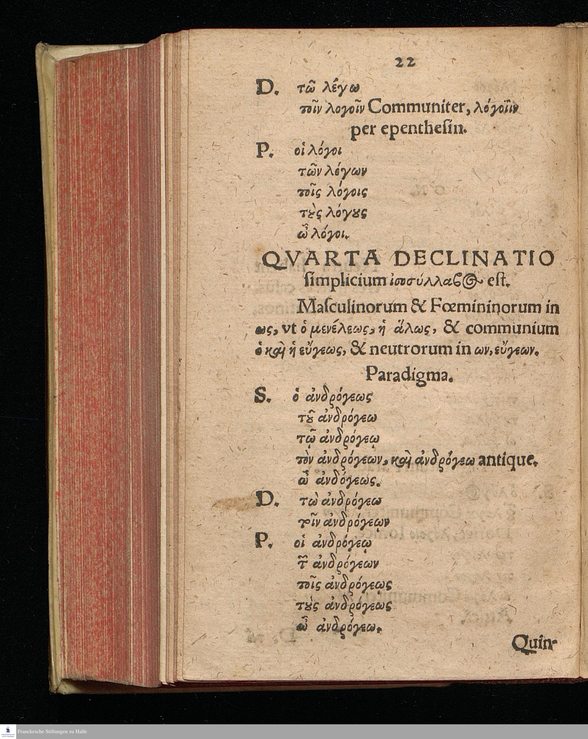 PhILIPPI || MELANCHTHONIS || Grammaticae Graecae || EPITOME || AD PVERILEM INSTITVTIO=||nem et captuḿ accommodata.|| Adiecta sunt verba anomala,|| de Syntaxis, à || MATTHAEO DRESSERO.||