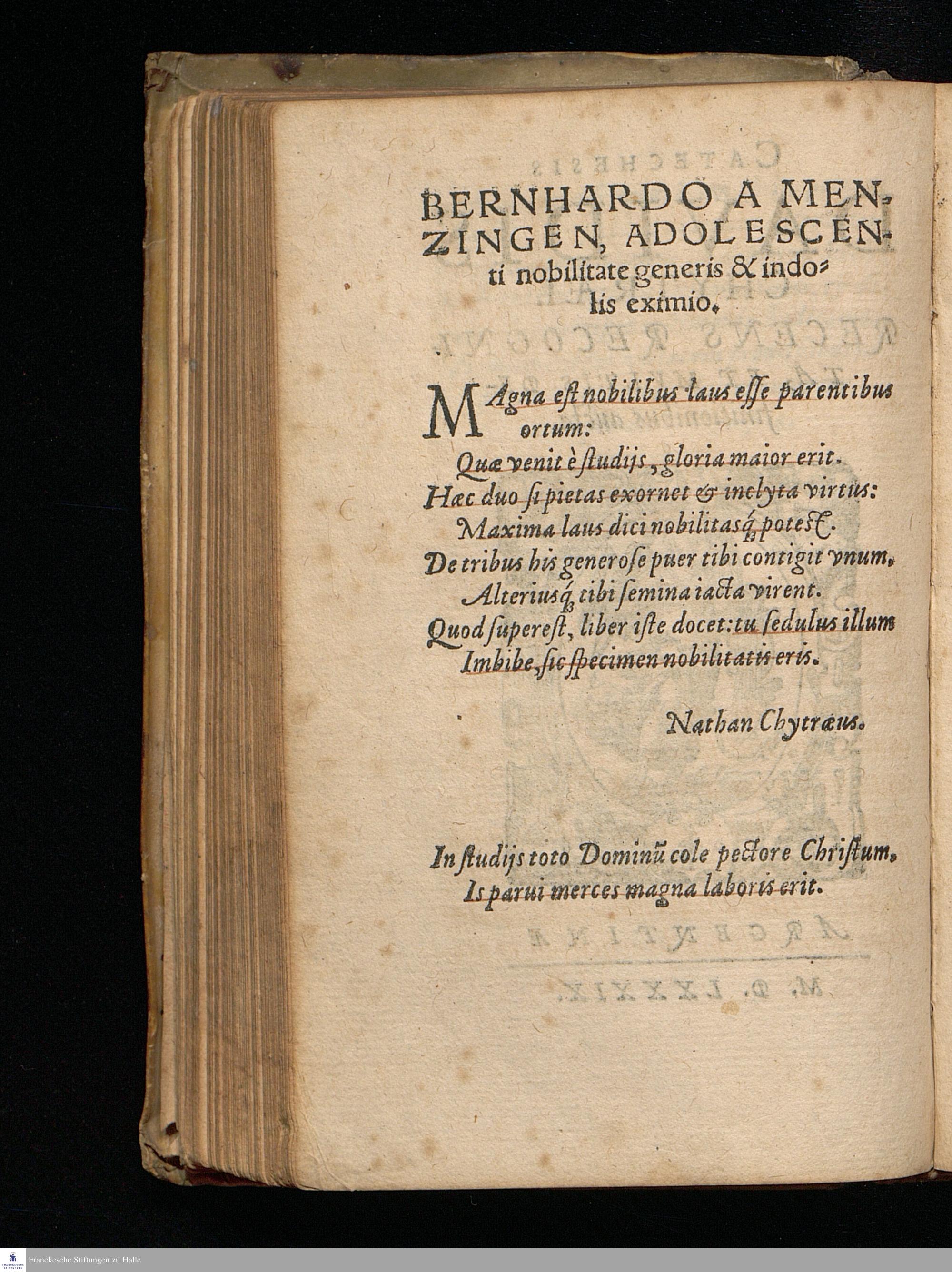 BERNHARDO A MENZINGEN, ADOLESCENti nobilitate generis & indolis eximio.