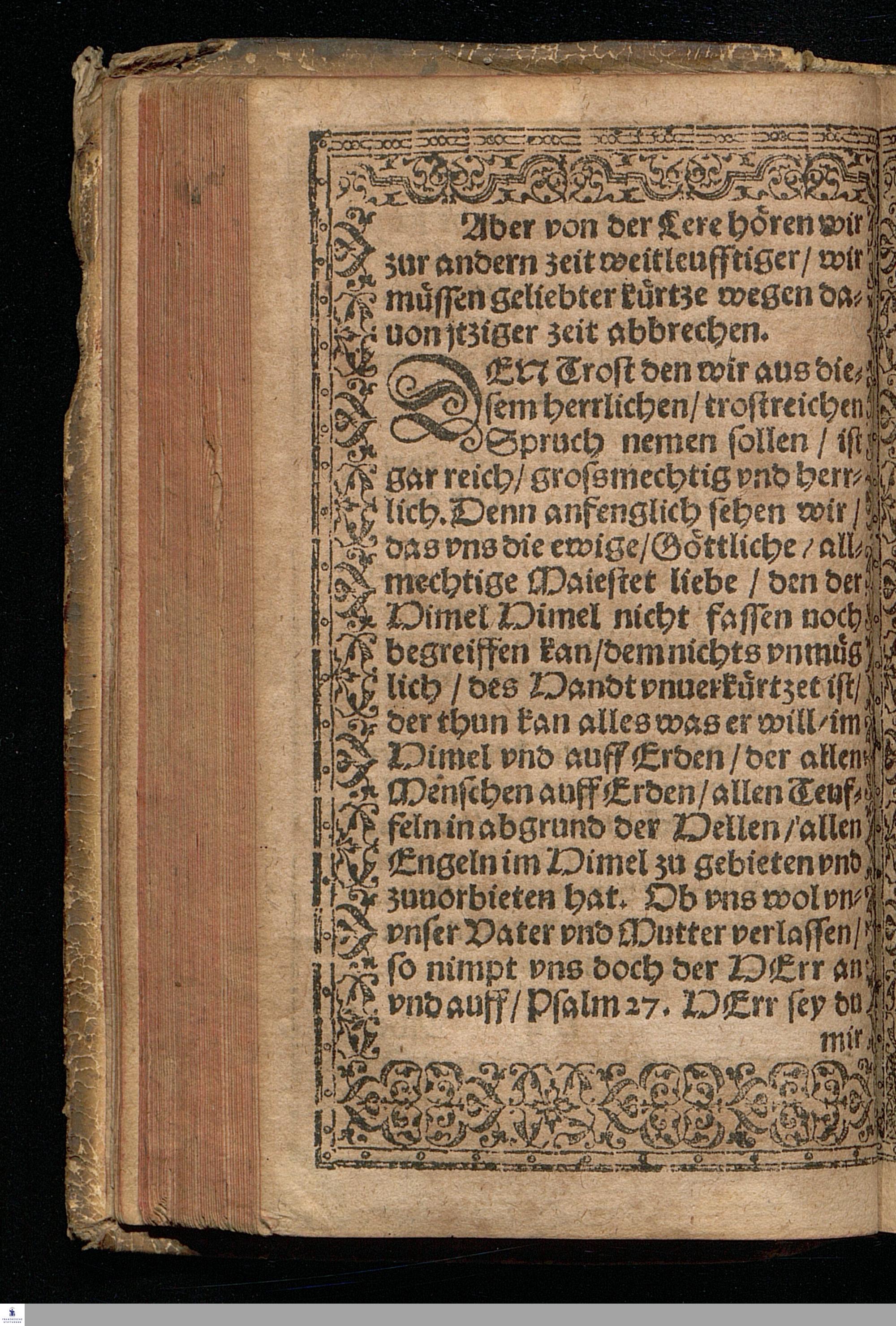 Eine Christliche || Predigt/ || Uber de[n] trost=||reichen Heuptspruch/ Jo=||hannis am dritten Cap. Also || hat Gott die Welt ge=||liebet/ etc. || Gethan durch Mag. Christoff: || Fischer/ Pfarherr zu Halb. || Sampt der Christlichen/ || tröstlichen außlegung/ der für=||nembsten Trostsprüche S. Jo=||hannis/ Welche M. Veit Dieterich/ || kurtz vor seinem abschied/ aus diesem jam=||merthal/ allen Christen zu trost/ vnd || seligem Valete/ zu schreiben || dictirt hat. ||