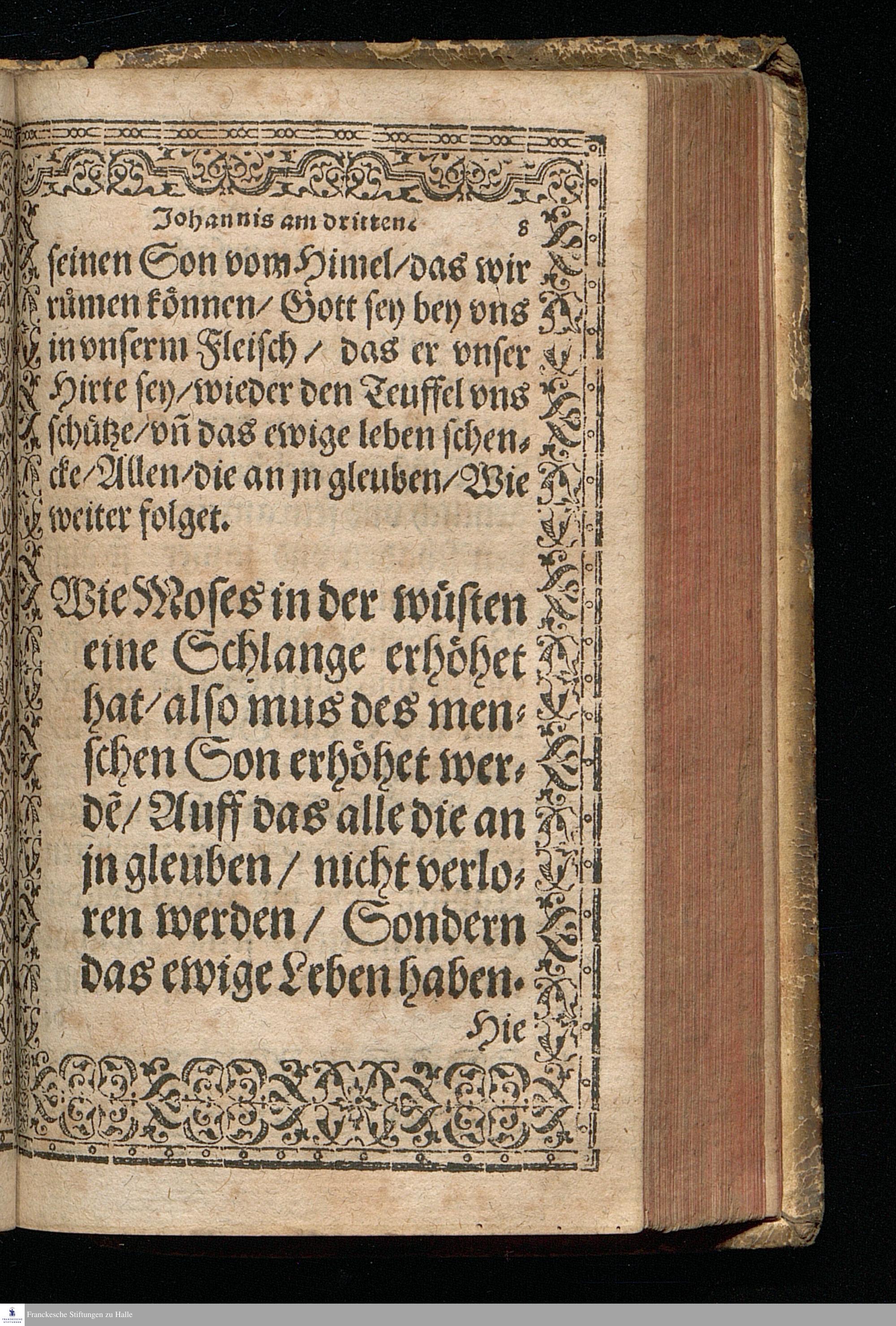 Eine Christliche || Predigt/ || Uber de[n] trost=||reichen Heuptspruch/ Jo=||hannis am dritten Cap. Also || hat Gott die Welt ge=||liebet/ etc. || Gethan durch Mag. Christoff: || Fischer/ Pfarherr zu Halb. || Sampt der Christlichen/ || tröstlichen außlegung/ der für=||nembsten Trostsprüche S. Jo=||hannis/ Welche M. Veit Dieterich/ || kurtz vor seinem abschied/ aus diesem jam=||merthal/ allen Christen zu trost/ vnd || seligem Valete/ zu schreiben || dictirt hat. ||