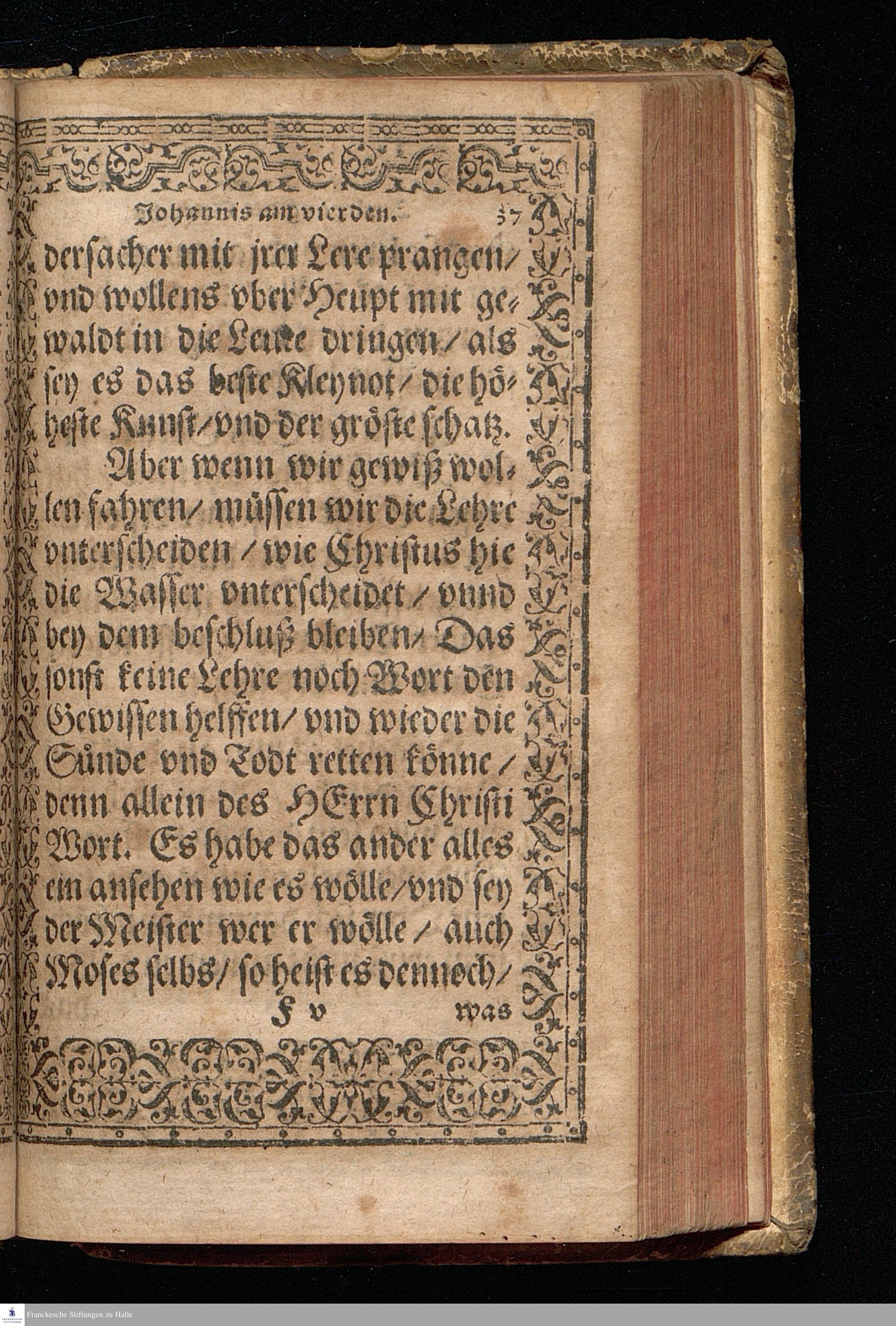 Eine Christliche || Predigt/ || Uber de[n] trost=||reichen Heuptspruch/ Jo=||hannis am dritten Cap. Also || hat Gott die Welt ge=||liebet/ etc. || Gethan durch Mag. Christoff: || Fischer/ Pfarherr zu Halb. || Sampt der Christlichen/ || tröstlichen außlegung/ der für=||nembsten Trostsprüche S. Jo=||hannis/ Welche M. Veit Dieterich/ || kurtz vor seinem abschied/ aus diesem jam=||merthal/ allen Christen zu trost/ vnd || seligem Valete/ zu schreiben || dictirt hat. ||