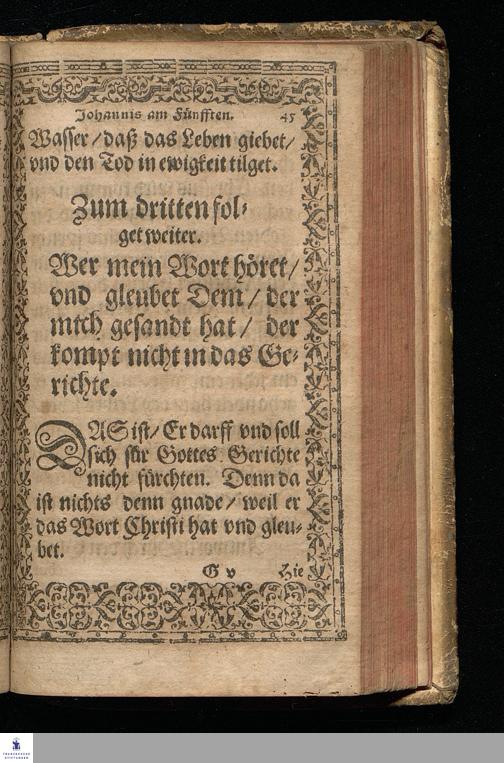 Eine Christliche || Predigt/ || Uber de[n] trost=||reichen Heuptspruch/ Jo=||hannis am dritten Cap. Also || hat Gott die Welt ge=||liebet/ etc. || Gethan durch Mag. Christoff: || Fischer/ Pfarherr zu Halb. || Sampt der Christlichen/ || tröstlichen außlegung/ der für=||nembsten Trostsprüche S. Jo=||hannis/ Welche M. Veit Dieterich/ || kurtz vor seinem abschied/ aus diesem jam=||merthal/ allen Christen zu trost/ vnd || seligem Valete/ zu schreiben || dictirt hat. ||