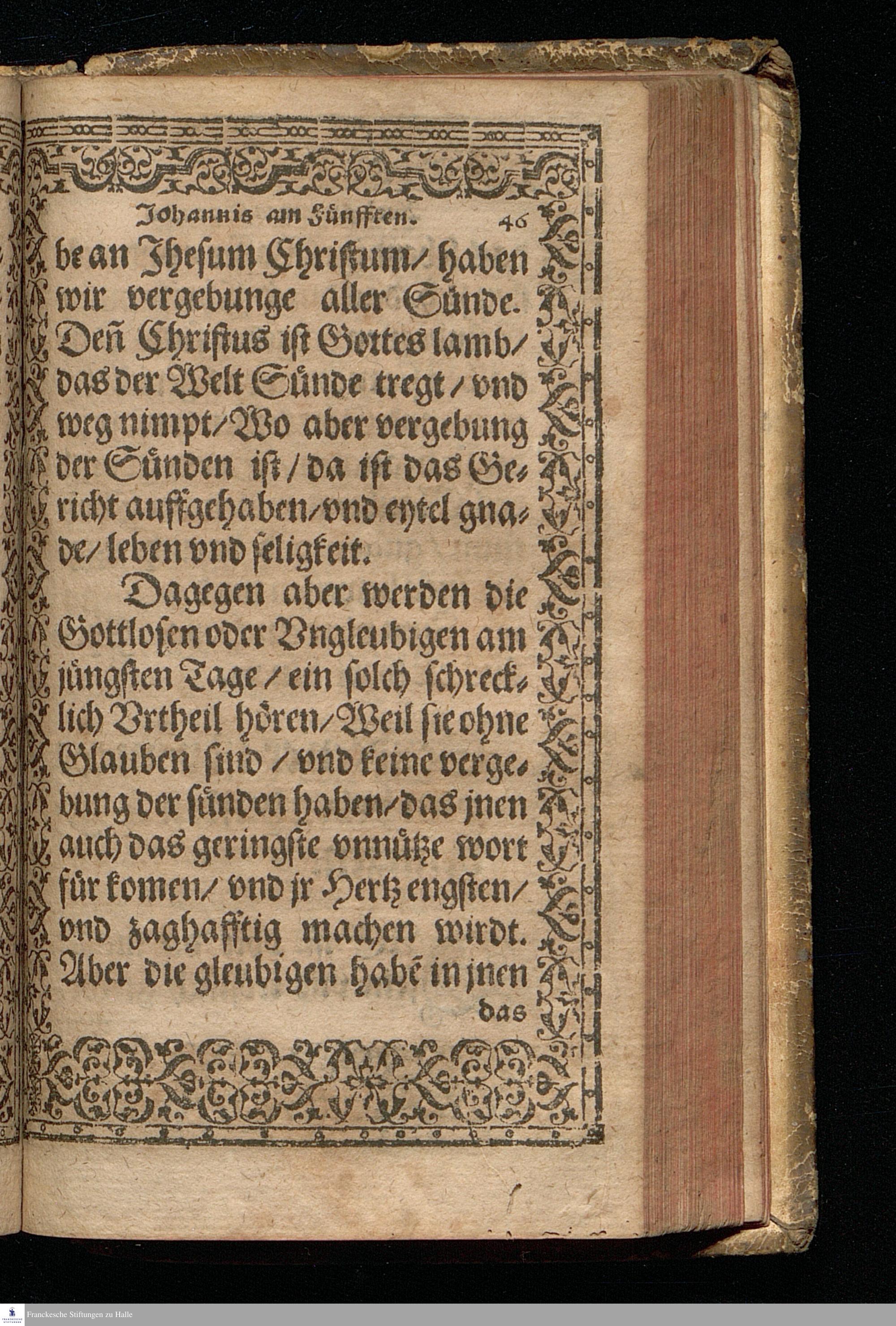 Eine Christliche || Predigt/ || Uber de[n] trost=||reichen Heuptspruch/ Jo=||hannis am dritten Cap. Also || hat Gott die Welt ge=||liebet/ etc. || Gethan durch Mag. Christoff: || Fischer/ Pfarherr zu Halb. || Sampt der Christlichen/ || tröstlichen außlegung/ der für=||nembsten Trostsprüche S. Jo=||hannis/ Welche M. Veit Dieterich/ || kurtz vor seinem abschied/ aus diesem jam=||merthal/ allen Christen zu trost/ vnd || seligem Valete/ zu schreiben || dictirt hat. ||