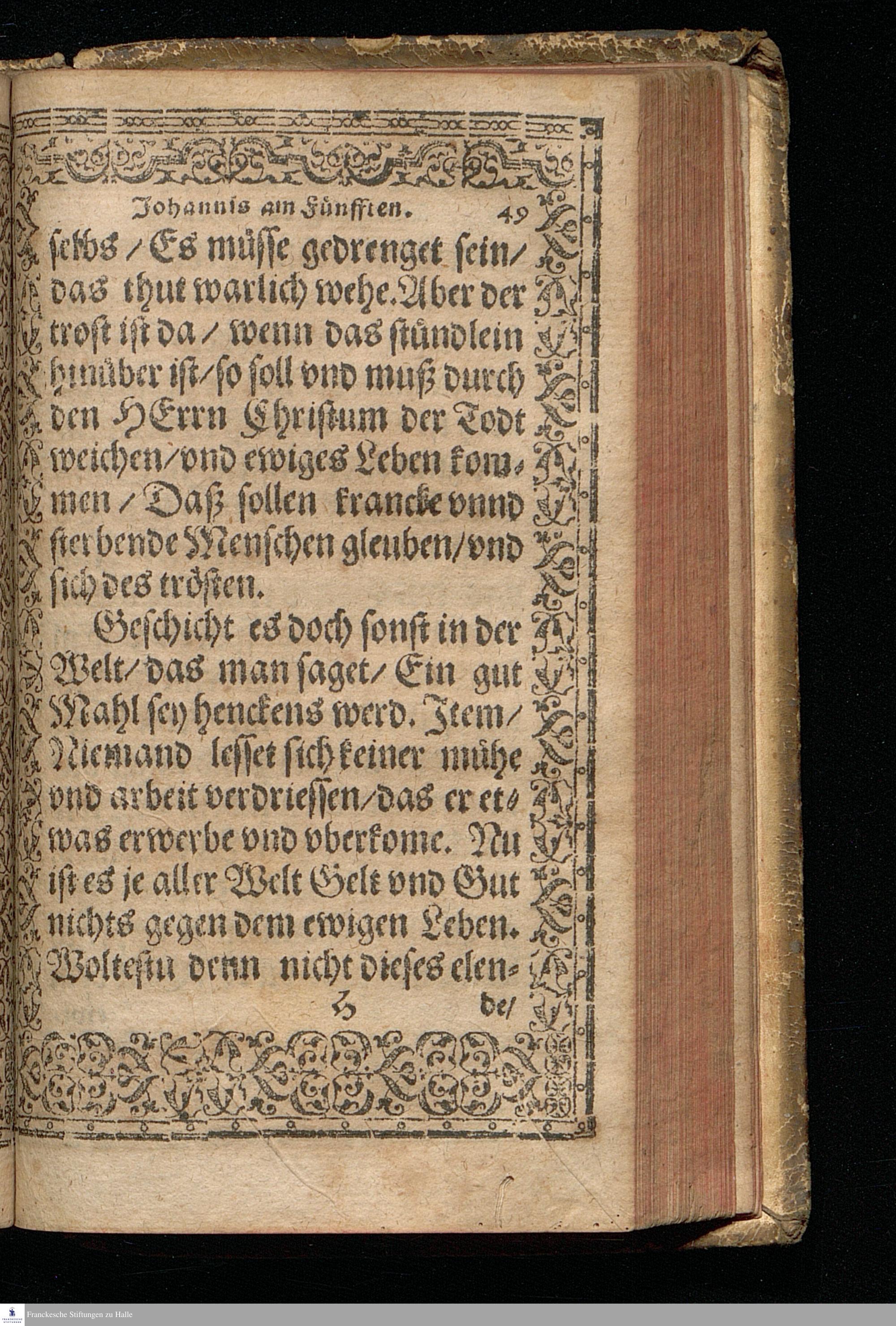Eine Christliche || Predigt/ || Uber de[n] trost=||reichen Heuptspruch/ Jo=||hannis am dritten Cap. Also || hat Gott die Welt ge=||liebet/ etc. || Gethan durch Mag. Christoff: || Fischer/ Pfarherr zu Halb. || Sampt der Christlichen/ || tröstlichen außlegung/ der für=||nembsten Trostsprüche S. Jo=||hannis/ Welche M. Veit Dieterich/ || kurtz vor seinem abschied/ aus diesem jam=||merthal/ allen Christen zu trost/ vnd || seligem Valete/ zu schreiben || dictirt hat. ||