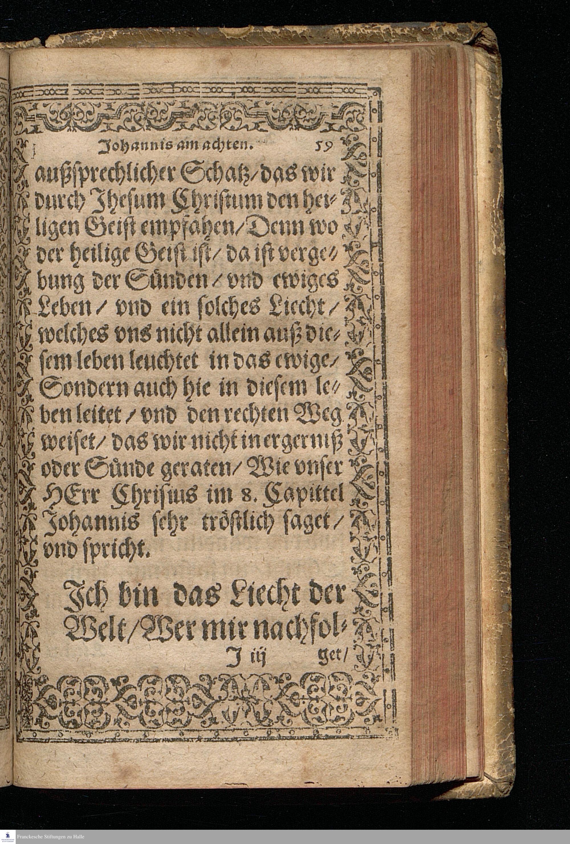 Eine Christliche || Predigt/ || Uber de[n] trost=||reichen Heuptspruch/ Jo=||hannis am dritten Cap. Also || hat Gott die Welt ge=||liebet/ etc. || Gethan durch Mag. Christoff: || Fischer/ Pfarherr zu Halb. || Sampt der Christlichen/ || tröstlichen außlegung/ der für=||nembsten Trostsprüche S. Jo=||hannis/ Welche M. Veit Dieterich/ || kurtz vor seinem abschied/ aus diesem jam=||merthal/ allen Christen zu trost/ vnd || seligem Valete/ zu schreiben || dictirt hat. ||