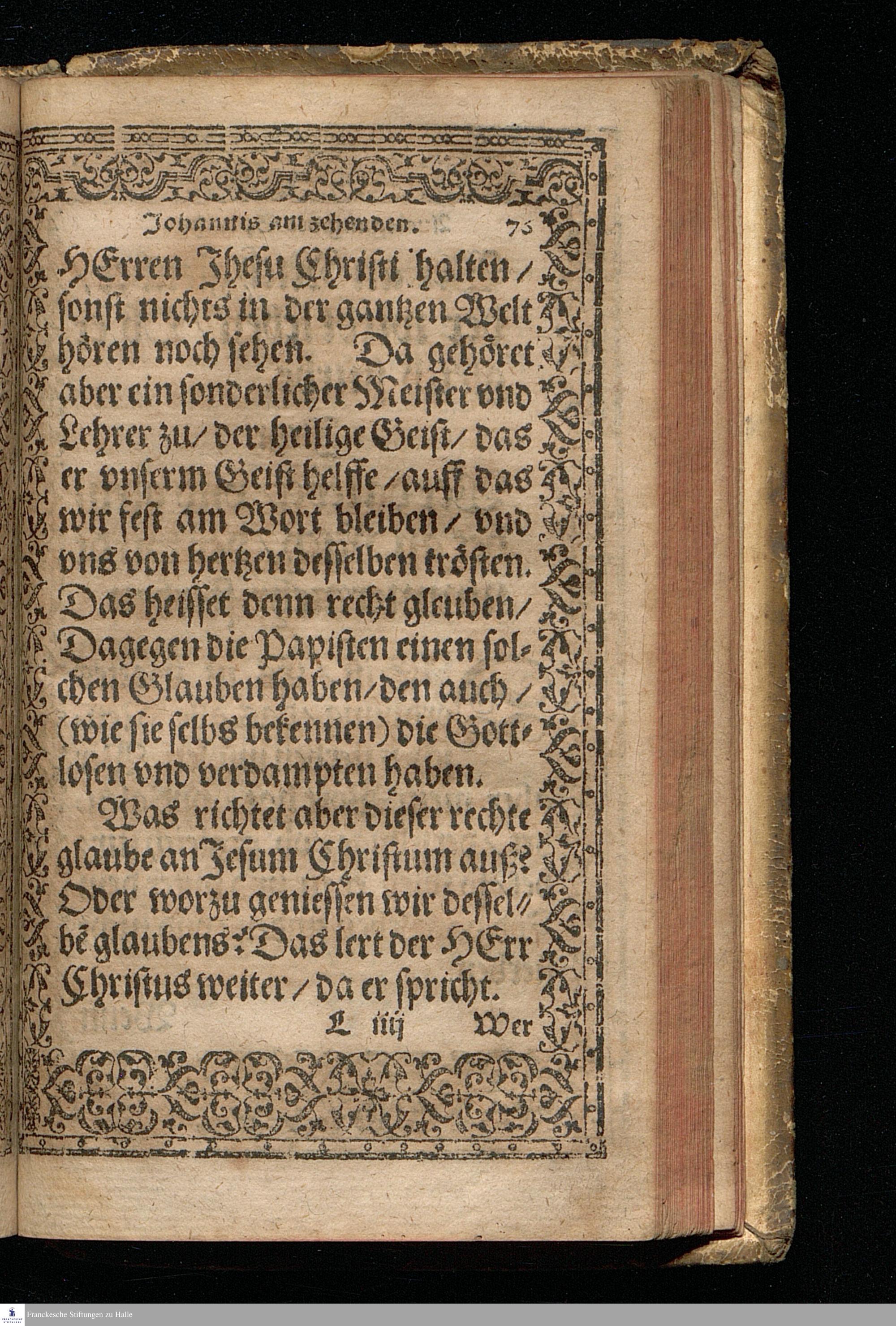 Eine Christliche || Predigt/ || Uber de[n] trost=||reichen Heuptspruch/ Jo=||hannis am dritten Cap. Also || hat Gott die Welt ge=||liebet/ etc. || Gethan durch Mag. Christoff: || Fischer/ Pfarherr zu Halb. || Sampt der Christlichen/ || tröstlichen außlegung/ der für=||nembsten Trostsprüche S. Jo=||hannis/ Welche M. Veit Dieterich/ || kurtz vor seinem abschied/ aus diesem jam=||merthal/ allen Christen zu trost/ vnd || seligem Valete/ zu schreiben || dictirt hat. ||
