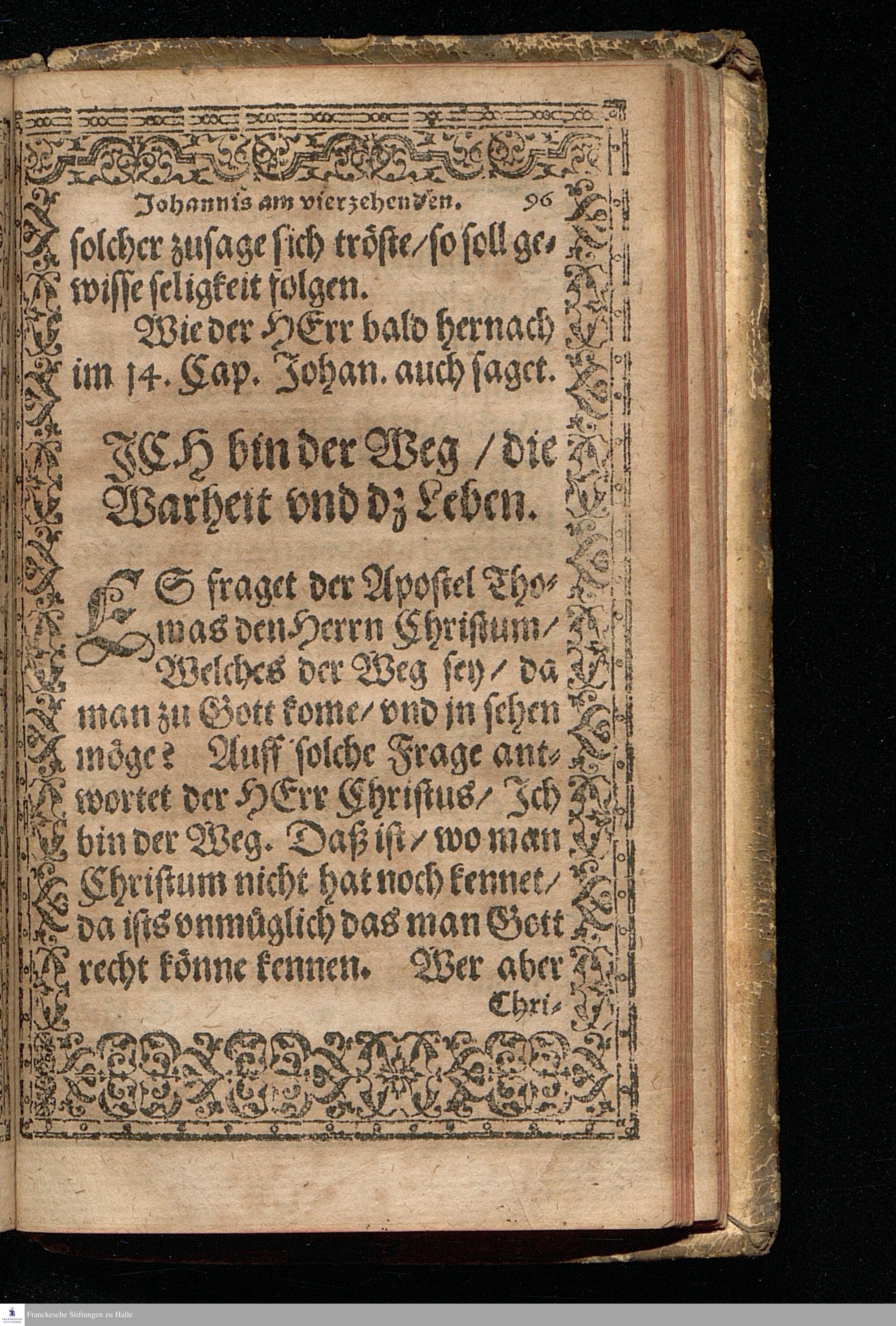 Eine Christliche || Predigt/ || Uber de[n] trost=||reichen Heuptspruch/ Jo=||hannis am dritten Cap. Also || hat Gott die Welt ge=||liebet/ etc. || Gethan durch Mag. Christoff: || Fischer/ Pfarherr zu Halb. || Sampt der Christlichen/ || tröstlichen außlegung/ der für=||nembsten Trostsprüche S. Jo=||hannis/ Welche M. Veit Dieterich/ || kurtz vor seinem abschied/ aus diesem jam=||merthal/ allen Christen zu trost/ vnd || seligem Valete/ zu schreiben || dictirt hat. ||