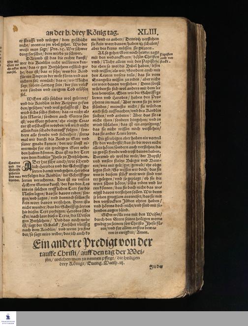 Hauspostilla || vber die Sontags vnd || der fürnemesten Feste Euange=||lia/ Durch das gantze jar.|| D. Mar. Luth.|| Wittemberg.|| Mit vleis auffs new vber||sehen/ gebessert/ vnd mit etlichen || Predigten gemehret.||[Hrsg.v.(Vitus Dietrich ... ||)]