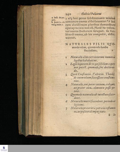DE NOTHIS || SPVRIISQVE FILIIS.|| LIBER SINGVLARIS || Gabrielis Palaeoti, S. Romanae Ecclesiae || Cardinalis, ac Bononiensis || Iurisconsulti.|| IN QVO OMNIA, QVAE AD || hanc materiam pertinent, copiosissimè si-||mulac doctissimè tractantur.||