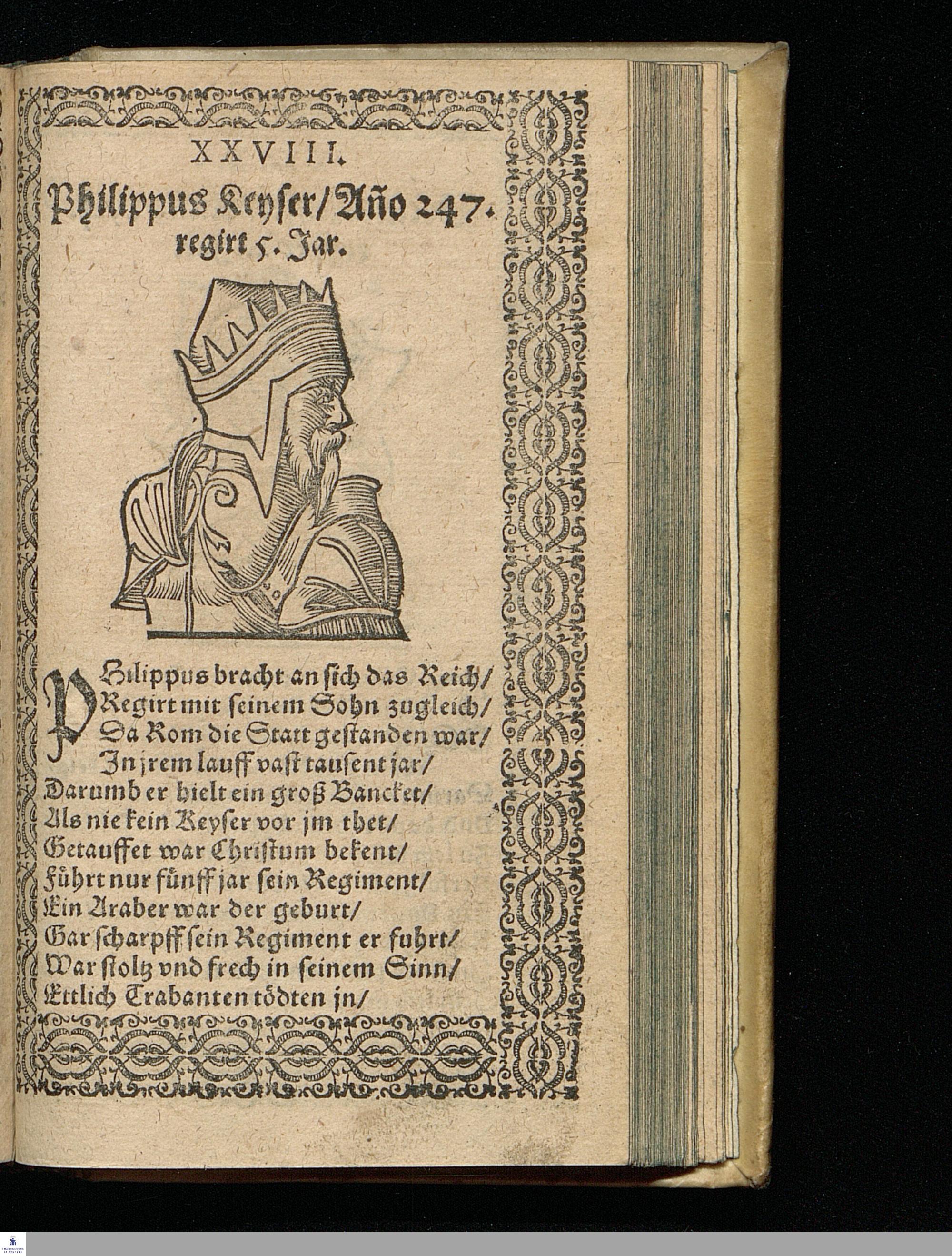 CHRONICA || Das ist/|| Beschreibung || aller Römischen Kayser/|| vom ersten Julio Caesare an/|| biß auff jtzt von Gottes gnaden regie=||renden Kayser Rudolphum/ vnsern aller=||gnädigsten Herrn/ auß vilen Chronicis || in kurtze Verß gebracht/|| Durch || Adolarium Rothen.||