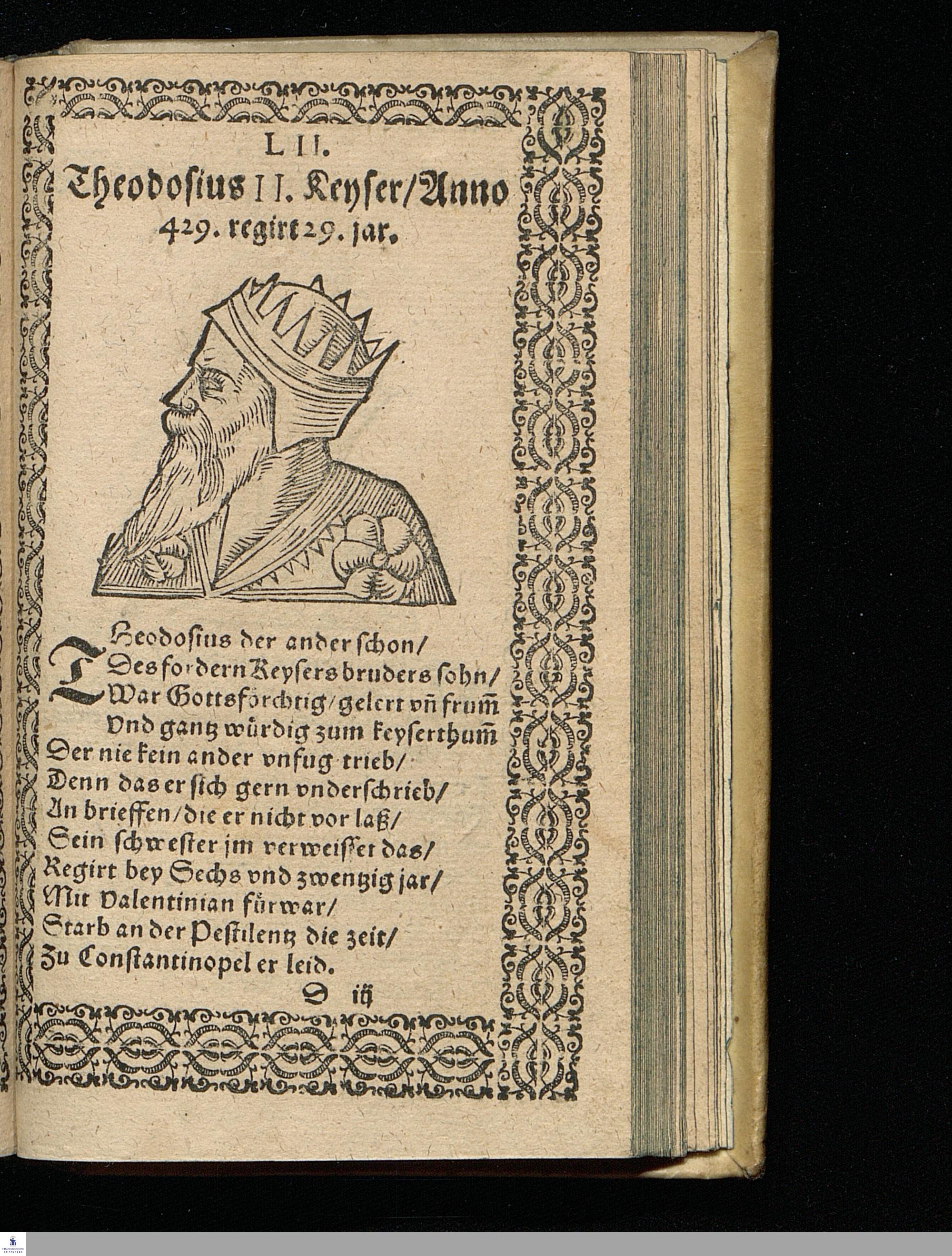 CHRONICA || Das ist/|| Beschreibung || aller Römischen Kayser/|| vom ersten Julio Caesare an/|| biß auff jtzt von Gottes gnaden regie=||renden Kayser Rudolphum/ vnsern aller=||gnädigsten Herrn/ auß vilen Chronicis || in kurtze Verß gebracht/|| Durch || Adolarium Rothen.||