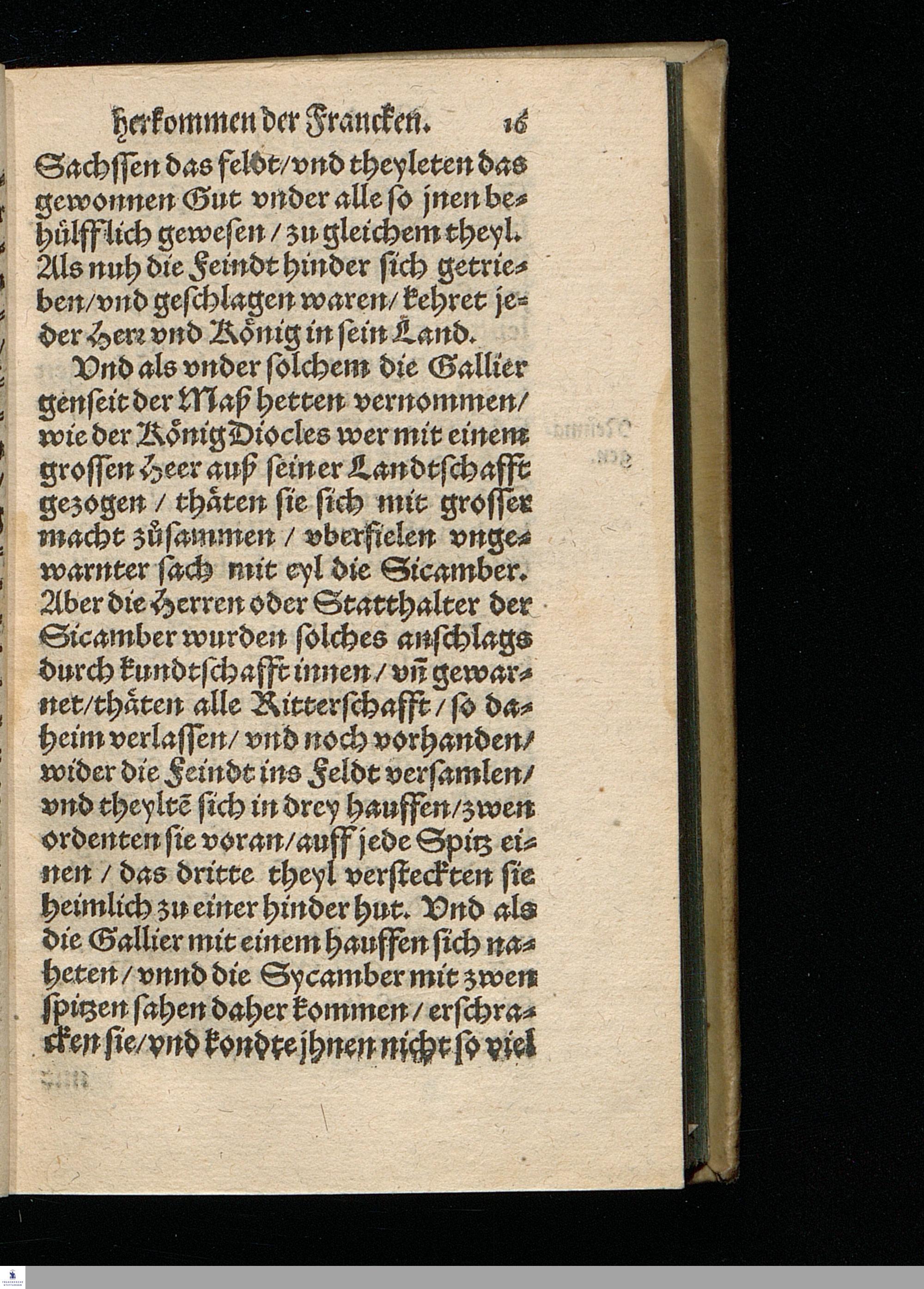 CHRONICA.|| Vom Vrsprung || herkommen/ und zunehmen der || Francken/ Erstlich durch den Ehrwürdigen || und Hochberühmten Herrn Johannem Tritthe=||mium/ weyland Abt zu Spanheim/ auß alten || glaubwürdigen Chronicken/ zusammen gelesen/|| und in Latein beschrieben/ nachmahls durch den || Hochgelehrten Jacob Schenck/ der rechten Do=||ctorn/ verdeutscht/ jetzund aber von newem || mit besonderm fleiß übersehen/ gebes=||sert/ und mit Argumenten || gemehret.||