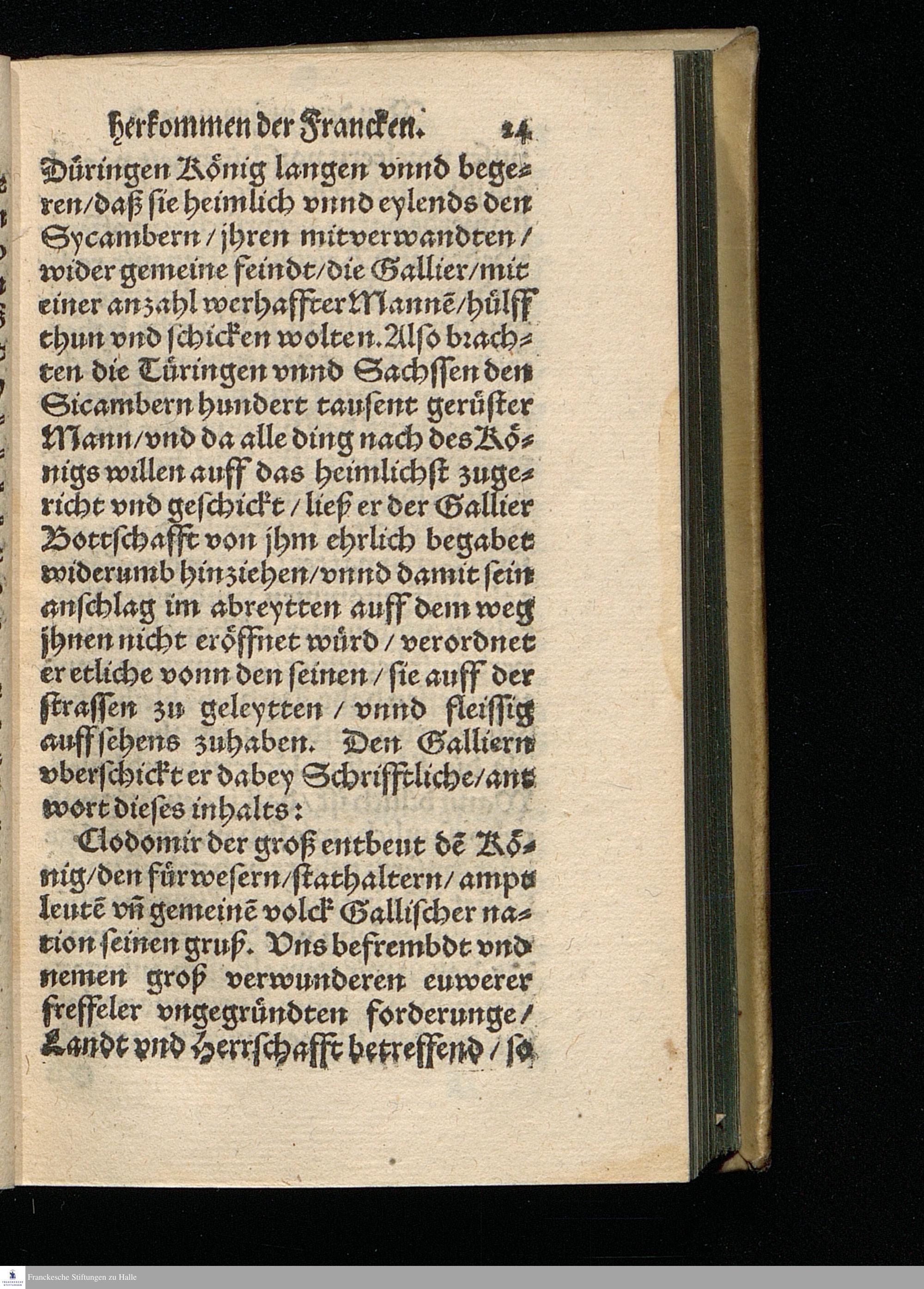 CHRONICA.|| Vom Vrsprung || herkommen/ und zunehmen der || Francken/ Erstlich durch den Ehrwürdigen || und Hochberühmten Herrn Johannem Tritthe=||mium/ weyland Abt zu Spanheim/ auß alten || glaubwürdigen Chronicken/ zusammen gelesen/|| und in Latein beschrieben/ nachmahls durch den || Hochgelehrten Jacob Schenck/ der rechten Do=||ctorn/ verdeutscht/ jetzund aber von newem || mit besonderm fleiß übersehen/ gebes=||sert/ und mit Argumenten || gemehret.||