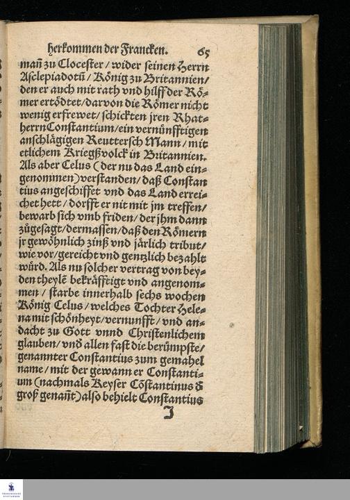 CHRONICA.|| Vom Vrsprung || herkommen/ und zunehmen der || Francken/ Erstlich durch den Ehrwürdigen || und Hochberühmten Herrn Johannem Tritthe=||mium/ weyland Abt zu Spanheim/ auß alten || glaubwürdigen Chronicken/ zusammen gelesen/|| und in Latein beschrieben/ nachmahls durch den || Hochgelehrten Jacob Schenck/ der rechten Do=||ctorn/ verdeutscht/ jetzund aber von newem || mit besonderm fleiß übersehen/ gebes=||sert/ und mit Argumenten || gemehret.||