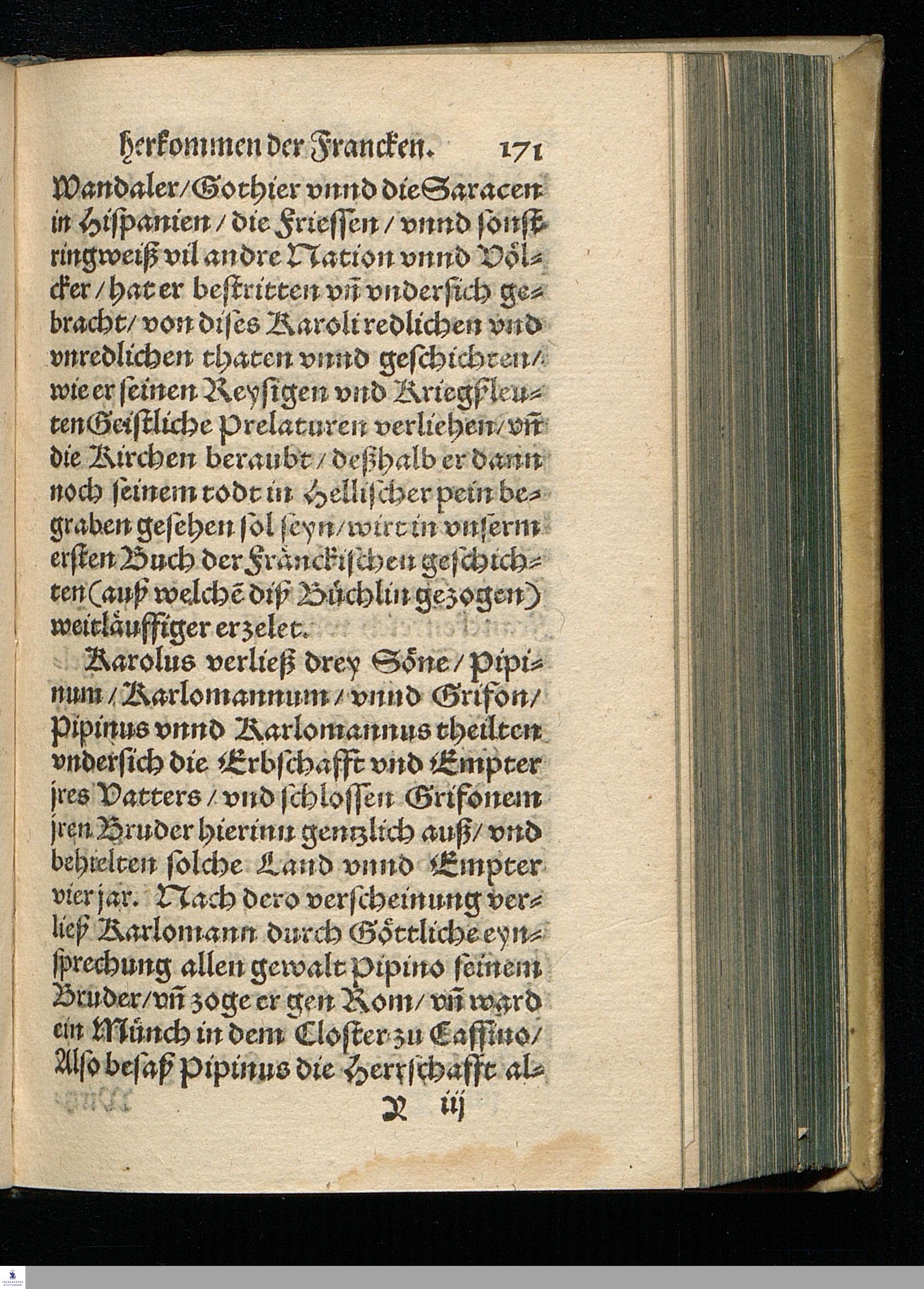 CHRONICA.|| Vom Vrsprung || herkommen/ und zunehmen der || Francken/ Erstlich durch den Ehrwürdigen || und Hochberühmten Herrn Johannem Tritthe=||mium/ weyland Abt zu Spanheim/ auß alten || glaubwürdigen Chronicken/ zusammen gelesen/|| und in Latein beschrieben/ nachmahls durch den || Hochgelehrten Jacob Schenck/ der rechten Do=||ctorn/ verdeutscht/ jetzund aber von newem || mit besonderm fleiß übersehen/ gebes=||sert/ und mit Argumenten || gemehret.||