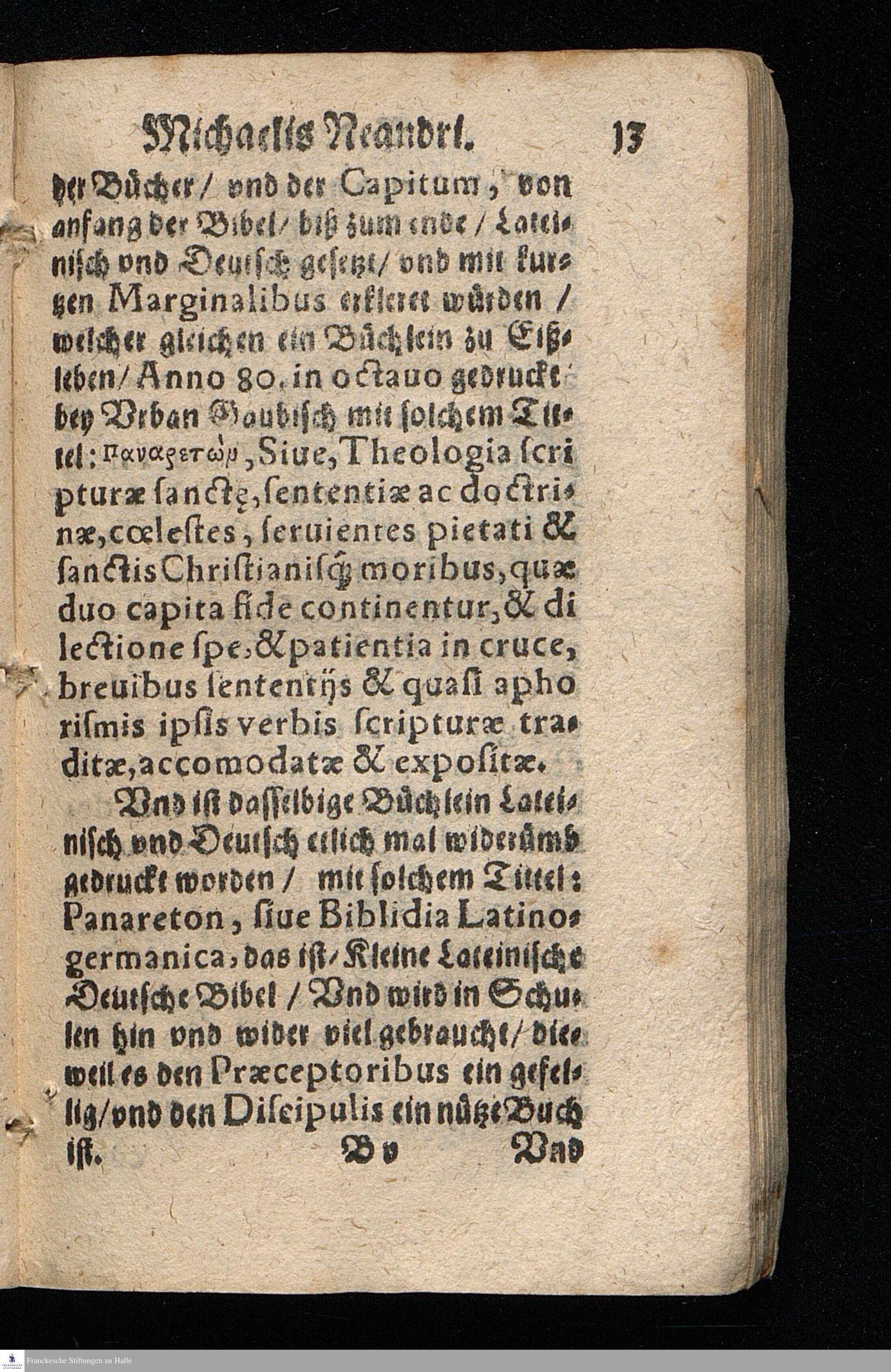 MICHAELIS || NEANDRI || Bedencken/ || Wie ein Knabe zu vnter-||weisen/ Das er one groß jagen/ || treiben/ vnd eilen/ mit Lust vnd Liebe/ || vom sechsten Jahr seines alters an/ biß auff || das achtzehende/ wol vnd fertig lernen möge/ || Pietatem, linguam Latinam, Græcam, He=||bræam, Artes, Vnd endlich vniuer=||sam Philosophiam. || Zum Fünfftenmal vberse-||hen/ mit einem Büchlein de mo-||ribus Puerorum decentibus, || Auch anderm nützlichen vnd || nötigem Bericht || verbessert. ||