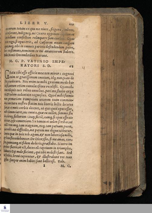 M. T. CICE=||RONIS EPISTO-||LAE AD COMPLVRES || SCRIPTAE, QVAS VVLGO || FAMILIARES APPEL=||LARVNT, || CVM ARGVMENTIS GI-||berti Longolij, editæ || DE SENTENTIA IOACHIMI || CAMERARII PABEPER=||GENSIS. || ACCESSERVNT. || Eiusdem IOACHIMI CAMERARII in hos epi=||stolarum libros castigationes, ... Interpretatio Latina Græcarum uocum. ||