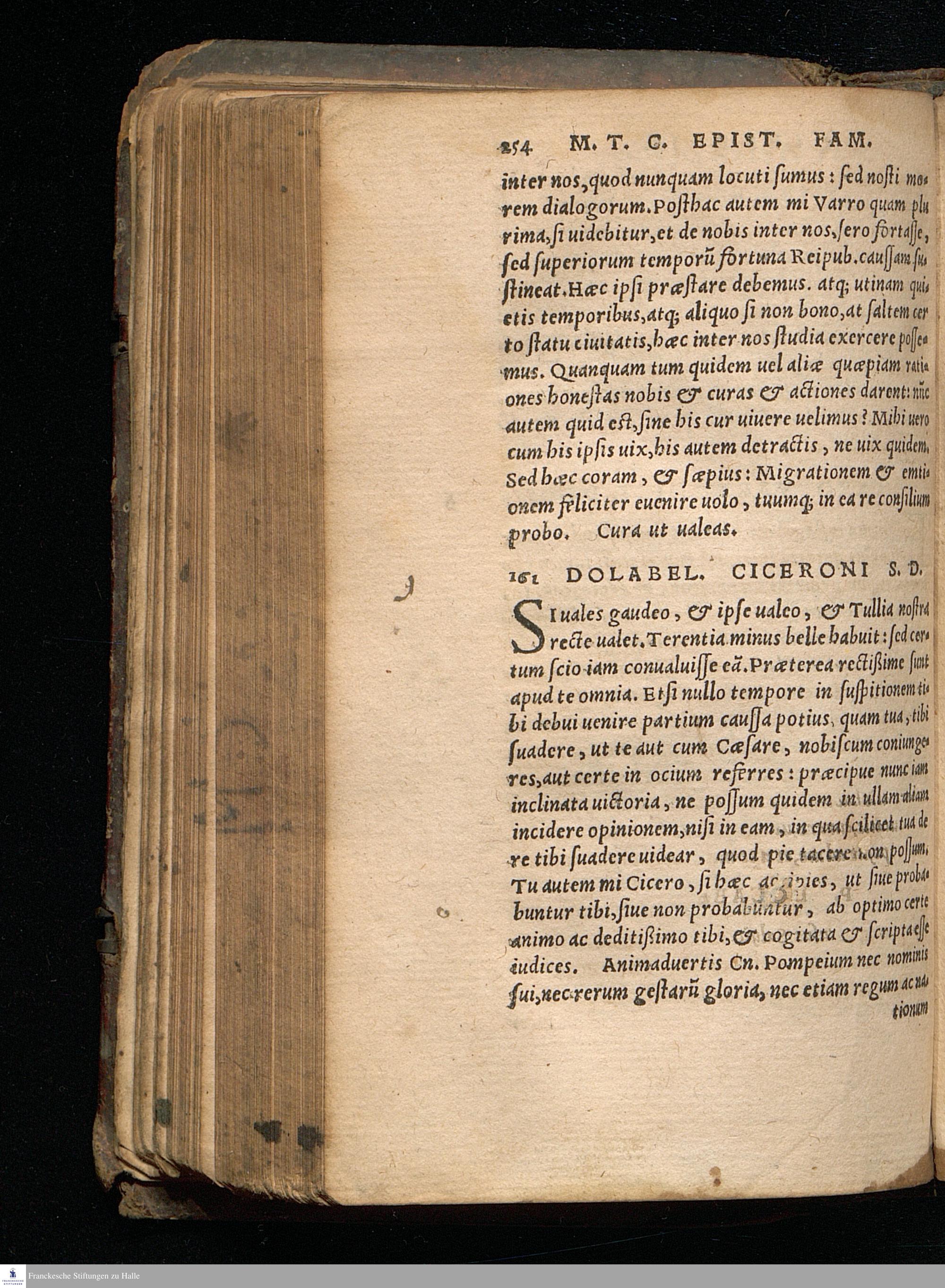 M. T. CICE=||RONIS EPISTO-||LAE AD COMPLVRES || SCRIPTAE, QVAS VVLGO || FAMILIARES APPEL=||LARVNT, || CVM ARGVMENTIS GI-||berti Longolij, editæ || DE SENTENTIA IOACHIMI || CAMERARII PABEPER=||GENSIS. || ACCESSERVNT. || Eiusdem IOACHIMI CAMERARII in hos epi=||stolarum libros castigationes, ... Interpretatio Latina Græcarum uocum. ||