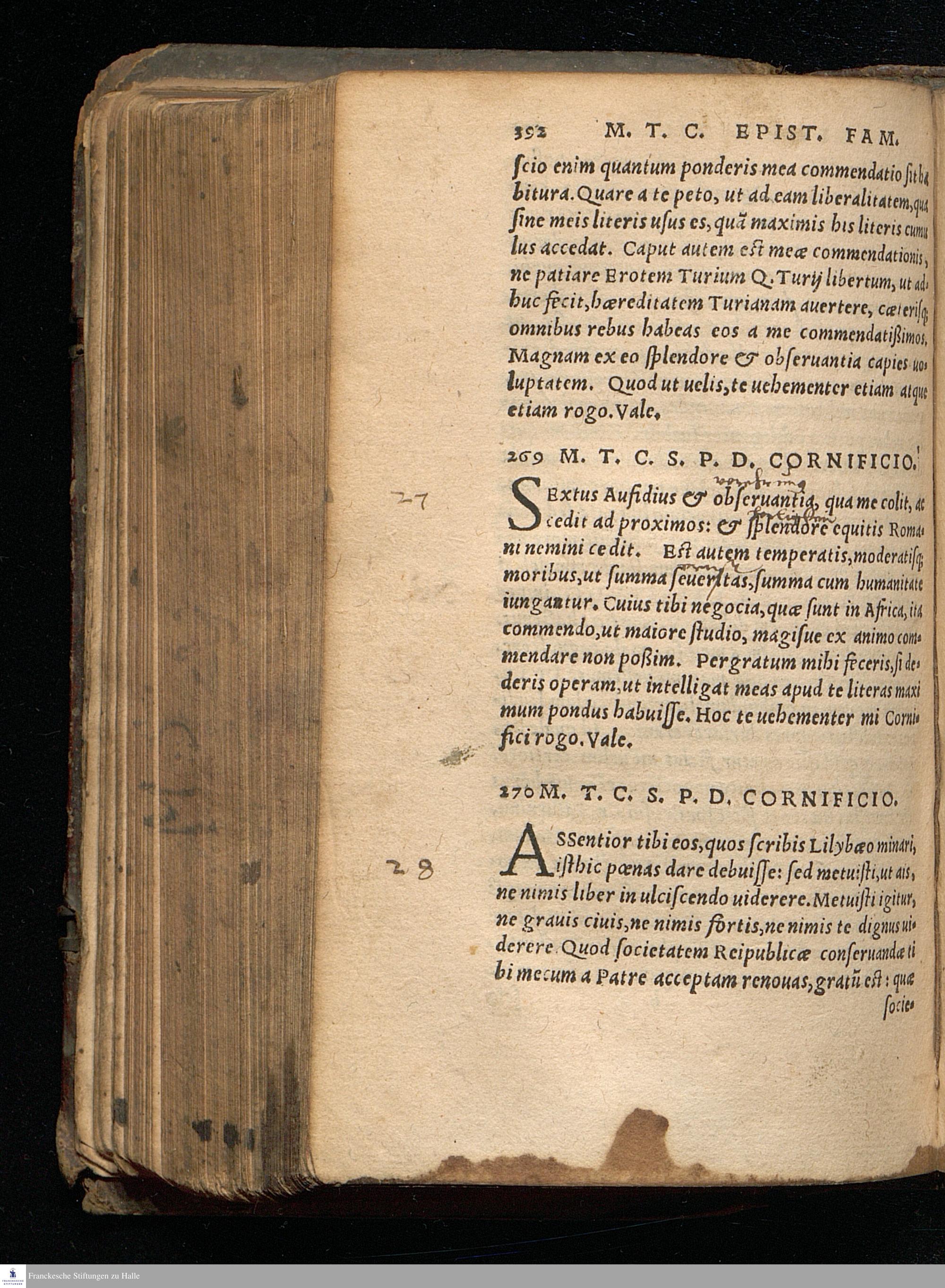 M. T. CICE=||RONIS EPISTO-||LAE AD COMPLVRES || SCRIPTAE, QVAS VVLGO || FAMILIARES APPEL=||LARVNT, || CVM ARGVMENTIS GI-||berti Longolij, editæ || DE SENTENTIA IOACHIMI || CAMERARII PABEPER=||GENSIS. || ACCESSERVNT. || Eiusdem IOACHIMI CAMERARII in hos epi=||stolarum libros castigationes, ... Interpretatio Latina Græcarum uocum. ||