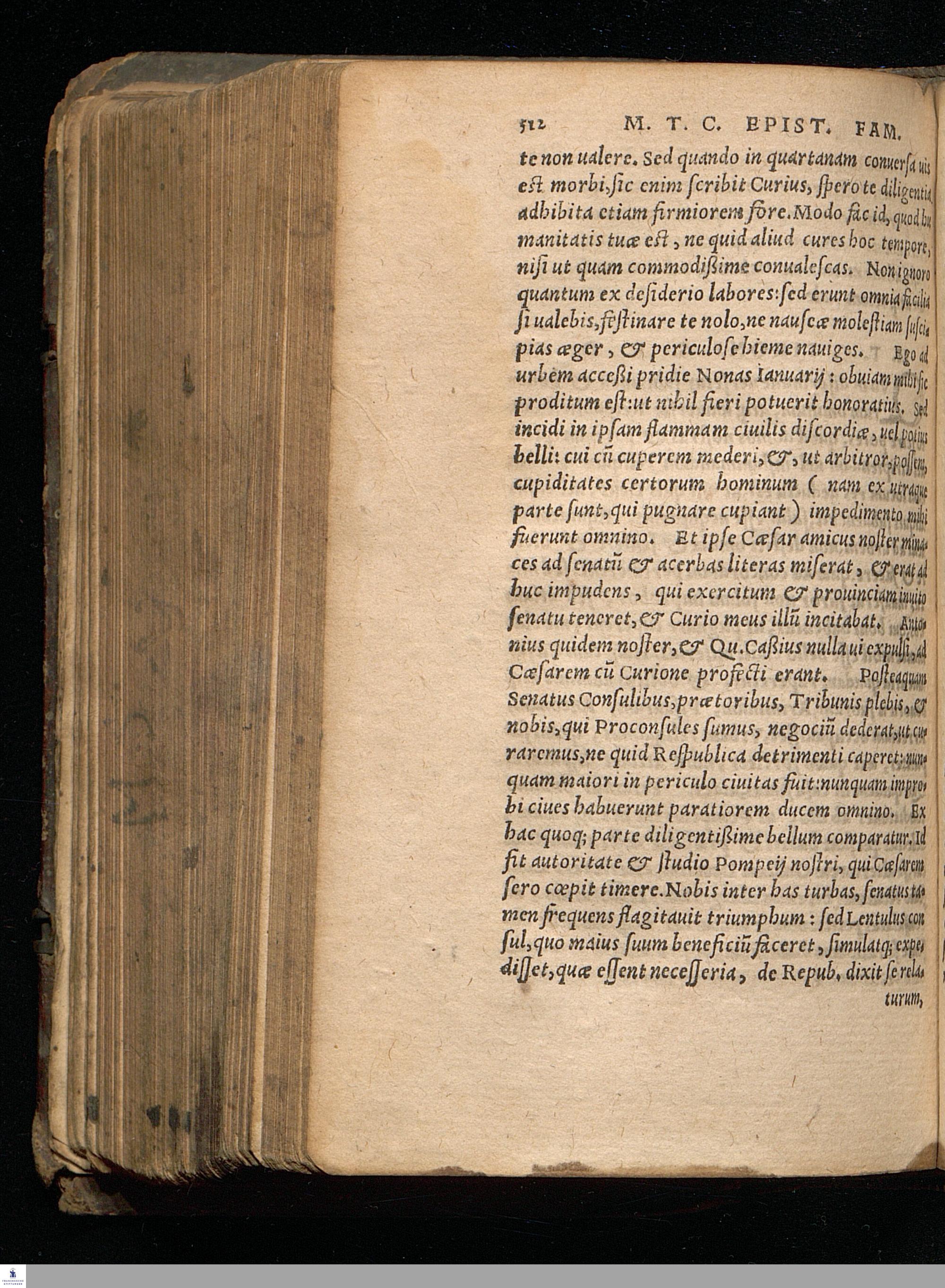 M. T. CICE=||RONIS EPISTO-||LAE AD COMPLVRES || SCRIPTAE, QVAS VVLGO || FAMILIARES APPEL=||LARVNT, || CVM ARGVMENTIS GI-||berti Longolij, editæ || DE SENTENTIA IOACHIMI || CAMERARII PABEPER=||GENSIS. || ACCESSERVNT. || Eiusdem IOACHIMI CAMERARII in hos epi=||stolarum libros castigationes, ... Interpretatio Latina Græcarum uocum. ||