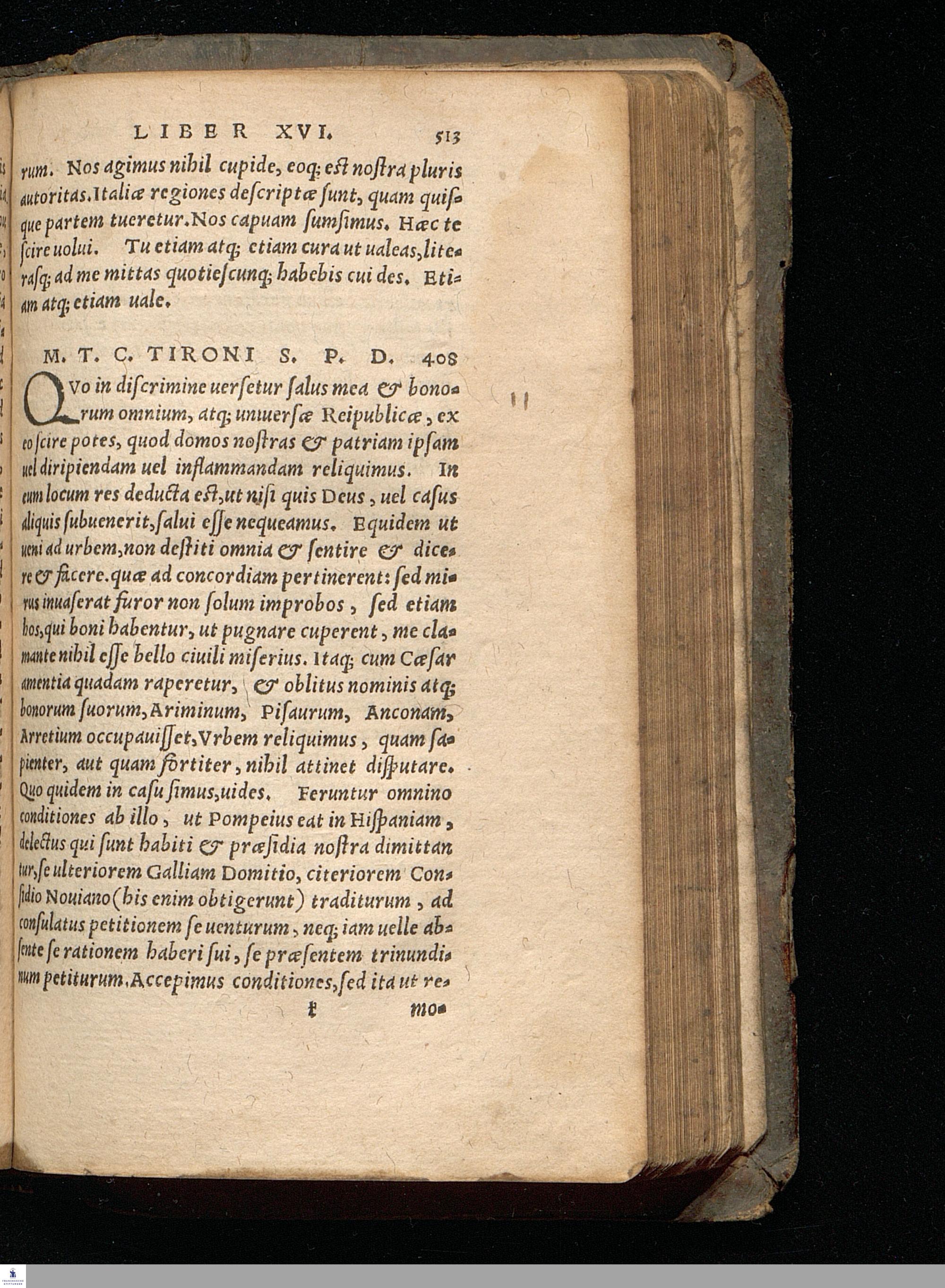 M. T. CICE=||RONIS EPISTO-||LAE AD COMPLVRES || SCRIPTAE, QVAS VVLGO || FAMILIARES APPEL=||LARVNT, || CVM ARGVMENTIS GI-||berti Longolij, editæ || DE SENTENTIA IOACHIMI || CAMERARII PABEPER=||GENSIS. || ACCESSERVNT. || Eiusdem IOACHIMI CAMERARII in hos epi=||stolarum libros castigationes, ... Interpretatio Latina Græcarum uocum. ||