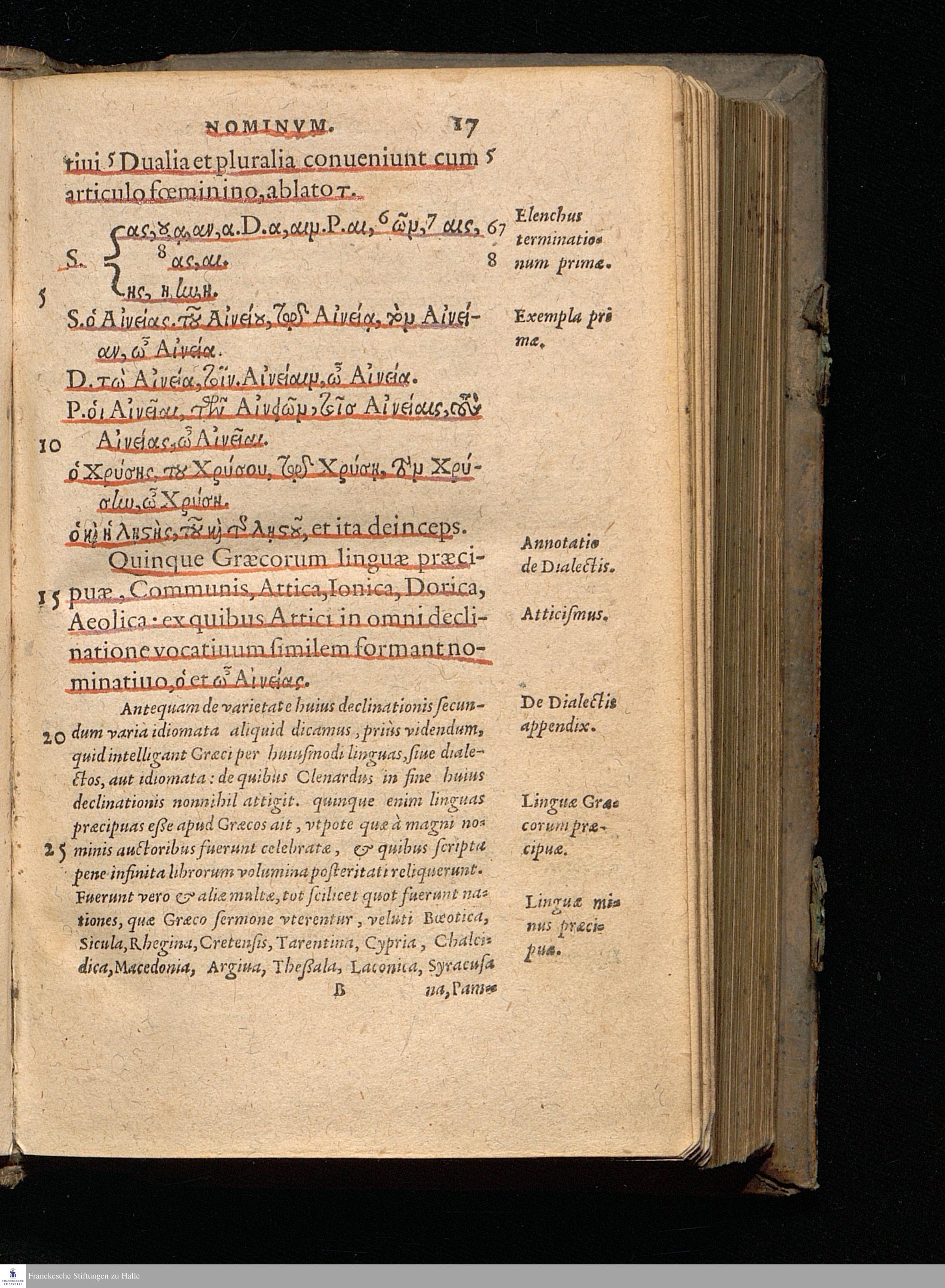 INSTITVTIONES || LINGVAE GRAE=||CAE, N. CLENARDO || AVTHORE, || CVM || Scholijs & Praxi P. Antesignani || Rapistagnensis. || Quid hoc libro contineatur, || quartum folium indicabit. || EDITIO QVINTA. ||