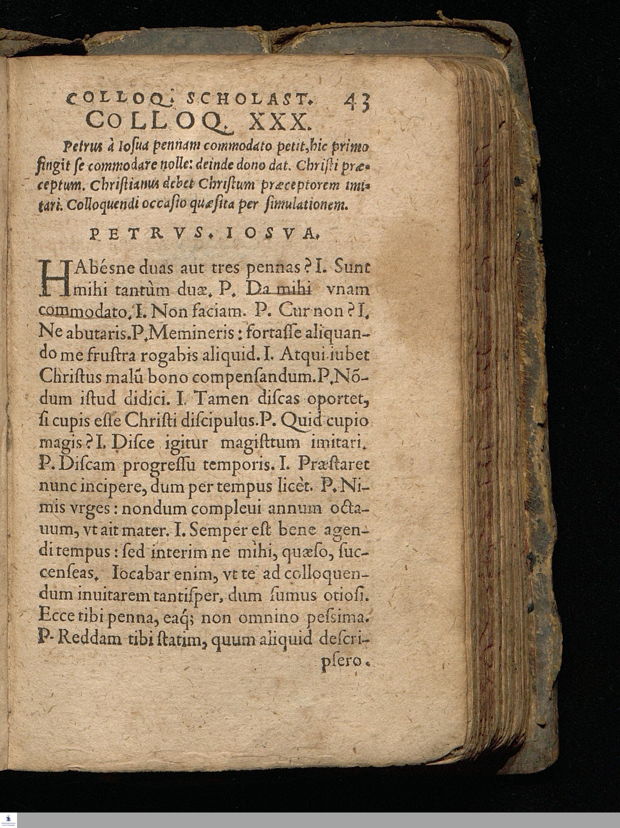 MATHURINI CORDERII || COLLOQVI=||ORVM SCHOLASTI=||CORVM LIBRI IIII. CVM AR=||gumentis, & restitutione eorum, quæ in pon-||tificia editione vel deprauata fue-||rant, vel omissa. || Nunc in gratiam & vsum Scholarum Ger-||manicarum denuo excusi. ||