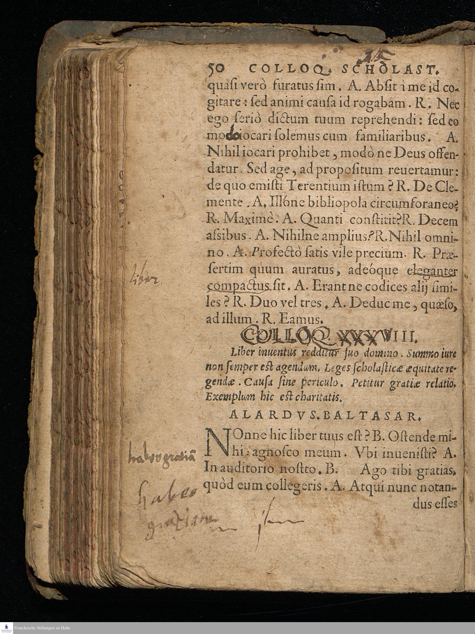 MATHURINI CORDERII || COLLOQVI=||ORVM SCHOLASTI=||CORVM LIBRI IIII. CVM AR=||gumentis, & restitutione eorum, quæ in pon-||tificia editione vel deprauata fue-||rant, vel omissa. || Nunc in gratiam & vsum Scholarum Ger-||manicarum denuo excusi. ||