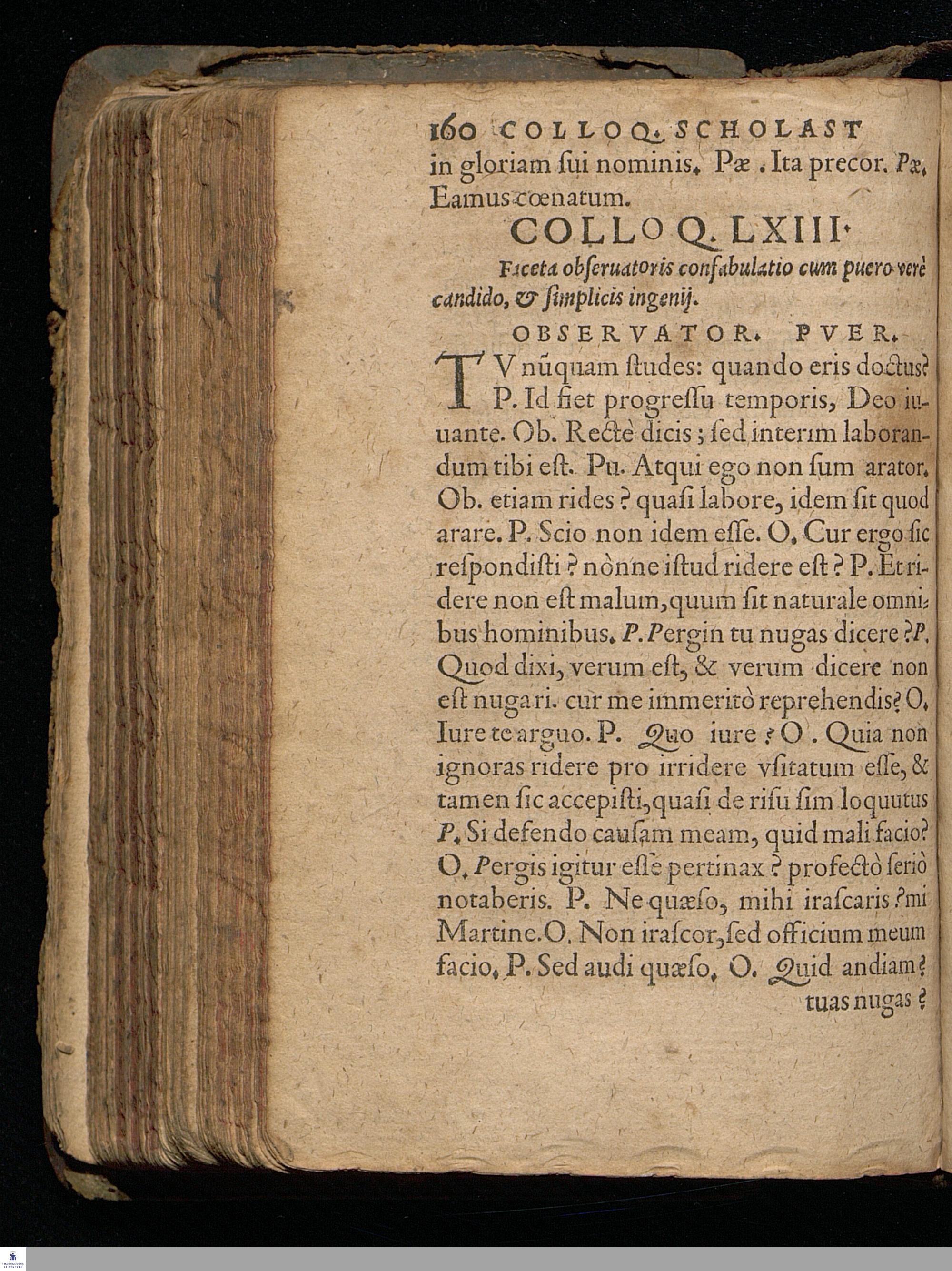 MATHURINI CORDERII || COLLOQVI=||ORVM SCHOLASTI=||CORVM LIBRI IIII. CVM AR=||gumentis, & restitutione eorum, quæ in pon-||tificia editione vel deprauata fue-||rant, vel omissa. || Nunc in gratiam & vsum Scholarum Ger-||manicarum denuo excusi. ||