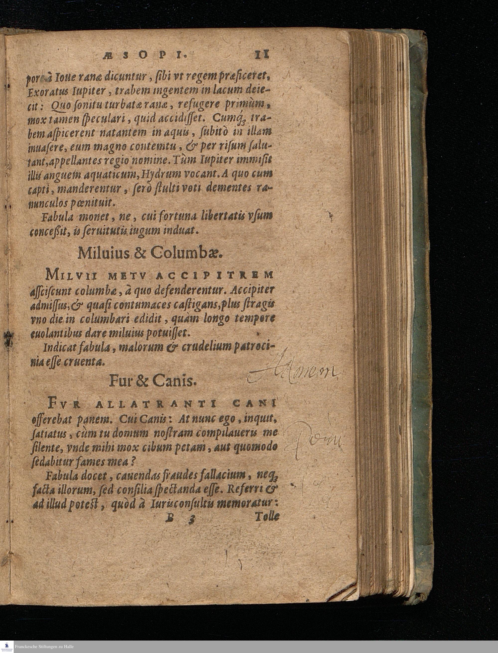 FABELLAE || AESOPICAE QVAE-||DAM NOTIORES, ET IN || SCHOLIS VSITATAE;|| Partim excerptae de priori editione,|| partim nunc primùm compositae || A || Ioachimo Camerario.||
