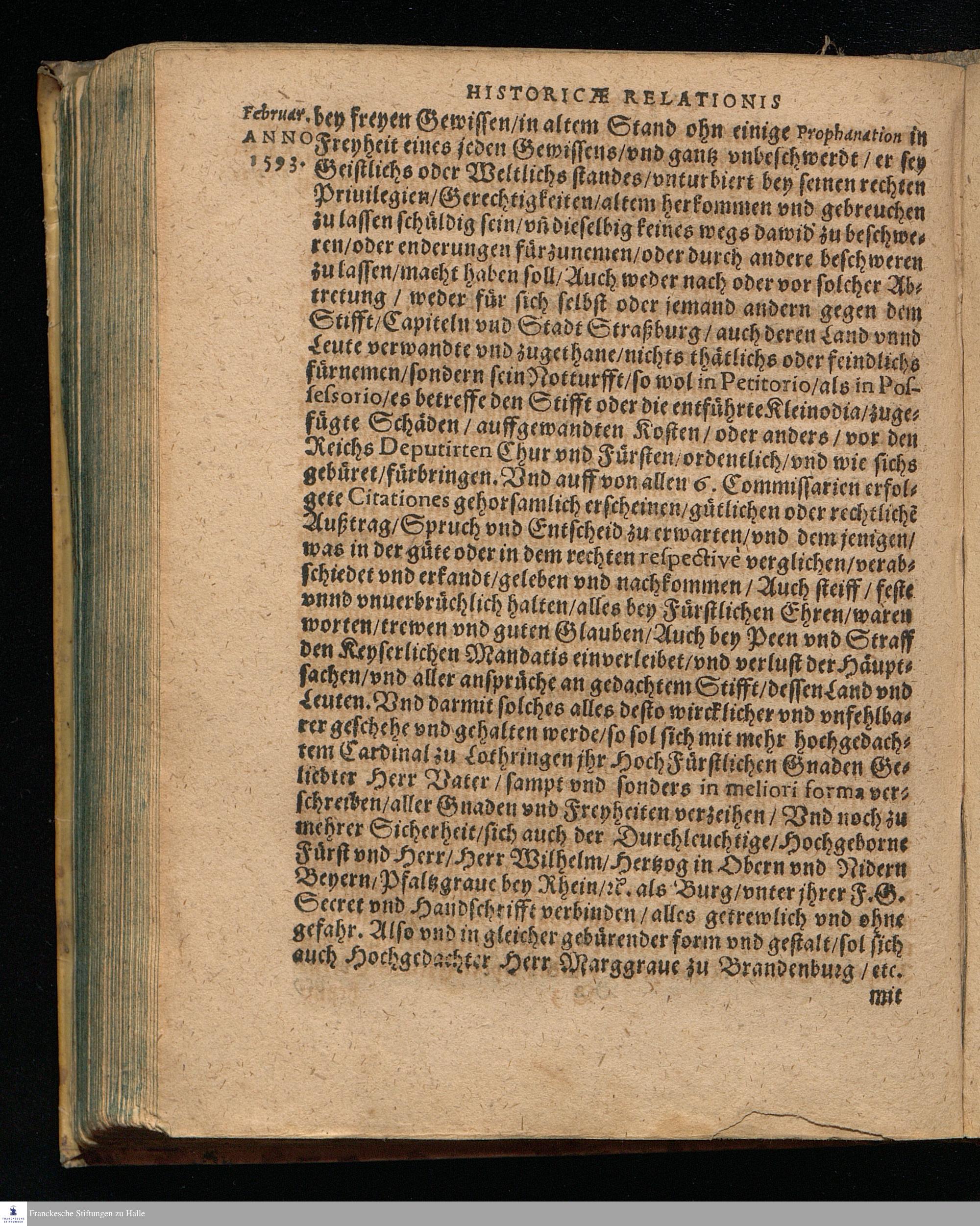 HISTORICAE RELA=||TIONIS CONTI=||NVATIO.|| Warhafftige Beschreibung || aller fürnemen vnd gedenckwirdigen Geschichte/|| so sich in Hoch vnd Nider Teutschlandt/ Polen/ Franckreich/|| Saphoy/ Jtalia/ Hungern/ Crabaten/Türkey vnd Persia/ sonderlich || aber in Sachsen vñ im Bistumb Straßburg/ hiezwischen nechst verschie=||ner Franckfurter Fastenmeß vnd etliche Monat daruor/ biß in || gegenwertige Herbstmeß/ Anno 1593. ver=||lauffen vnd zugetragen || haben.|| ... Durch || JACOBVM FRANCVM || Der Historien Liebhaber.||