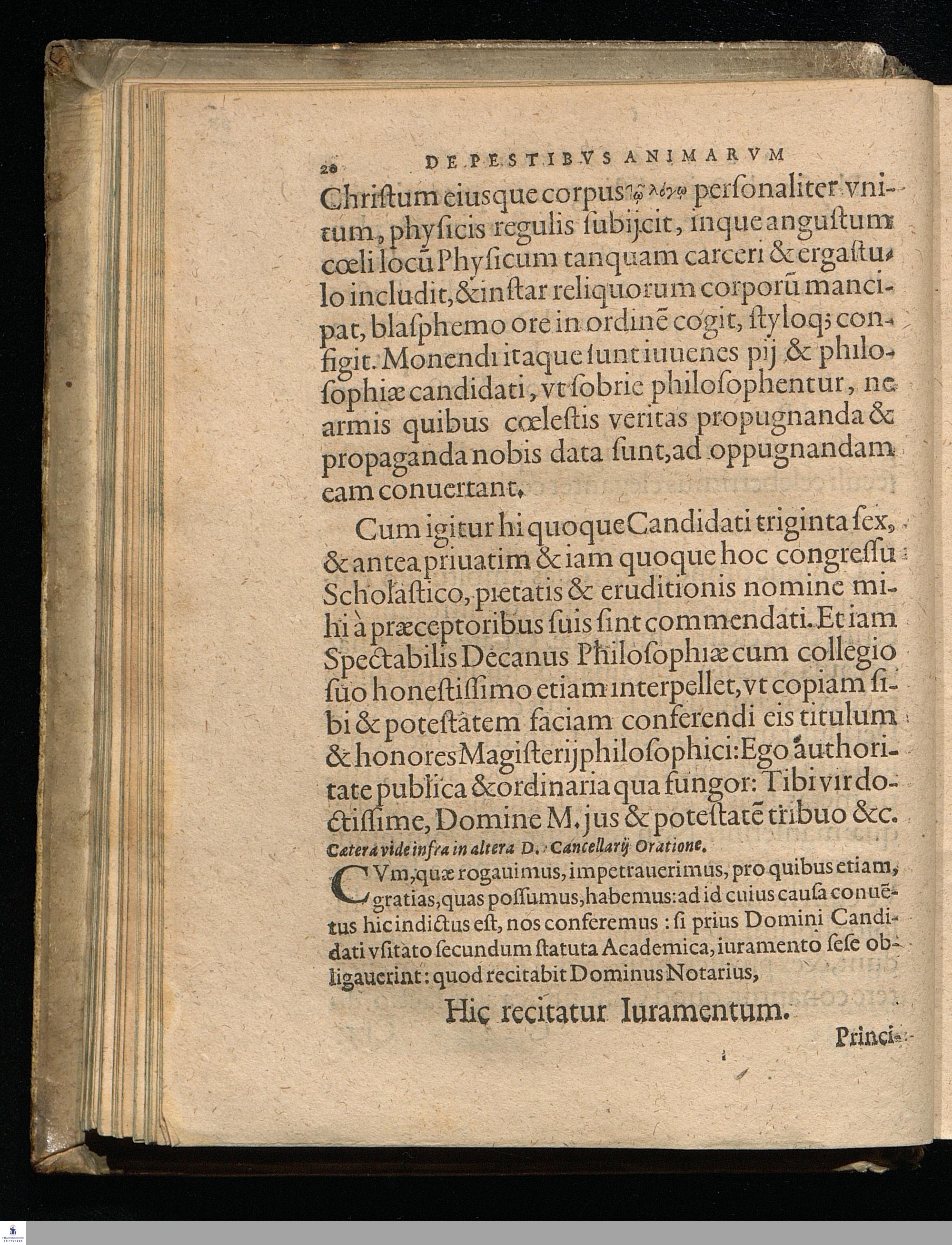 ACTVS MAGISTRORVM PHILO-||SOPHIAE DVO:|| Continentes || ORATIONES,|| DE ANIMARVM || PESTIBVS, QVIBVS INNVMERI || HOMINES OMNIBVS SECVLIS INFECTI || SVNT; VBI OSTENDITVR, QVOMODO TAMPER-||niciosa mala vitari & effugi pos-||sint.|| Habitas à || VITO MVLLERO, PROFESSORE || Moralis Philosophiae in Academia Tubingensi: cum Philoso-||phicos Iuuenibus honestis quinquaginta octo || tribueret.||
