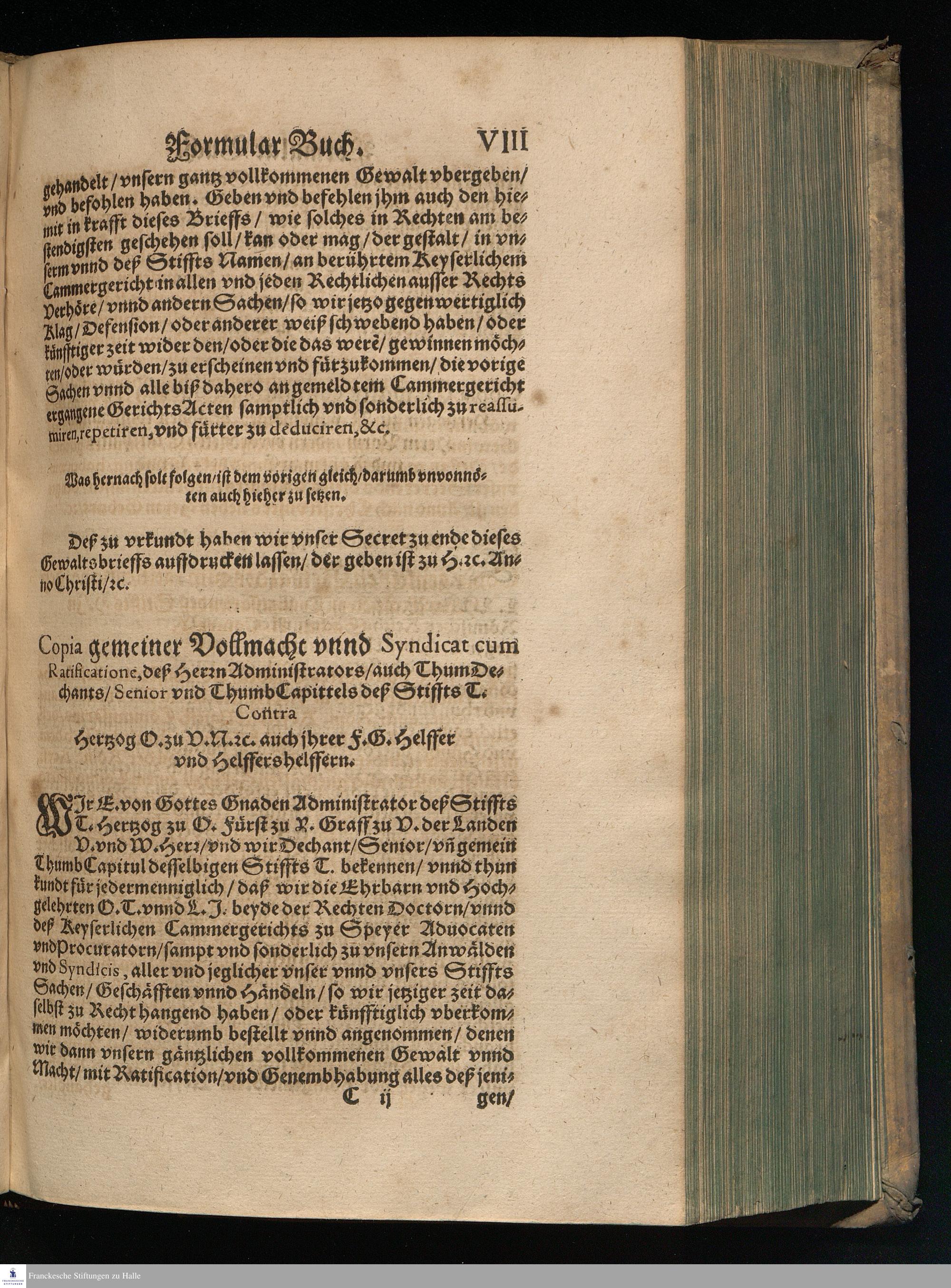 Formular || Allerley Gewaldten/ Tuto=||rien/ Curatorien/ Actorien/ so im Hochlöb=||lichen Keyserlichen Cammergericht eyngebracht: Jetzt || aber ... ordentlich zu=||sammen getragen.|| Durch || Den Ehrentvesten vnd Hochgelehrten Herrn || Nicolaum Cisnerum, beyder Rechten Doctorn/ Vnnd || weyland deß Keyserlichen Cammerge=||richts Assessorn/ #[et]c.|| ... ||