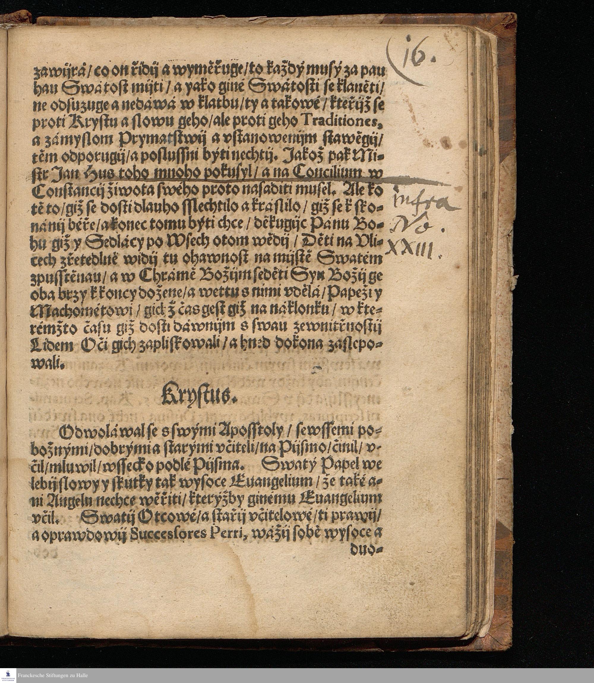 Obaudwauch Antykry=||stůw/ Konstantynopolitanského a Ržjm=||ského/ totiž/ Machométa a Papeže/ ged=||nohlasité a gednostegné Vćenij/ Wijra/ Religio a || Náboženstwij/ proti Krystu Sy=||nu Boha žiweho.|| ... ||