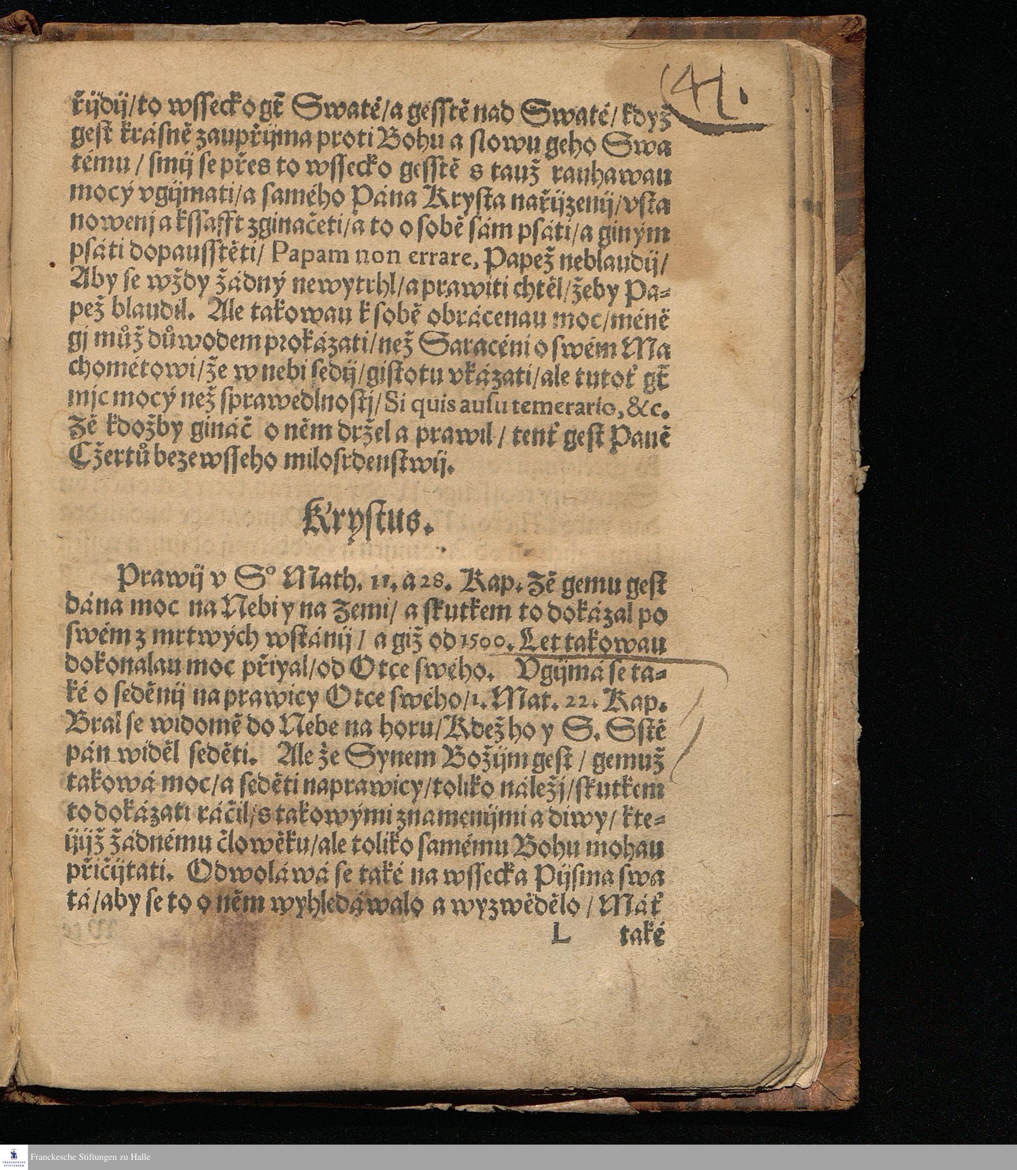 Obaudwauch Antykry=||stůw/ Konstantynopolitanského a Ržjm=||ského/ totiž/ Machométa a Papeže/ ged=||nohlasité a gednostegné Vćenij/ Wijra/ Religio a || Náboženstwij/ proti Krystu Sy=||nu Boha žiweho.|| ... ||