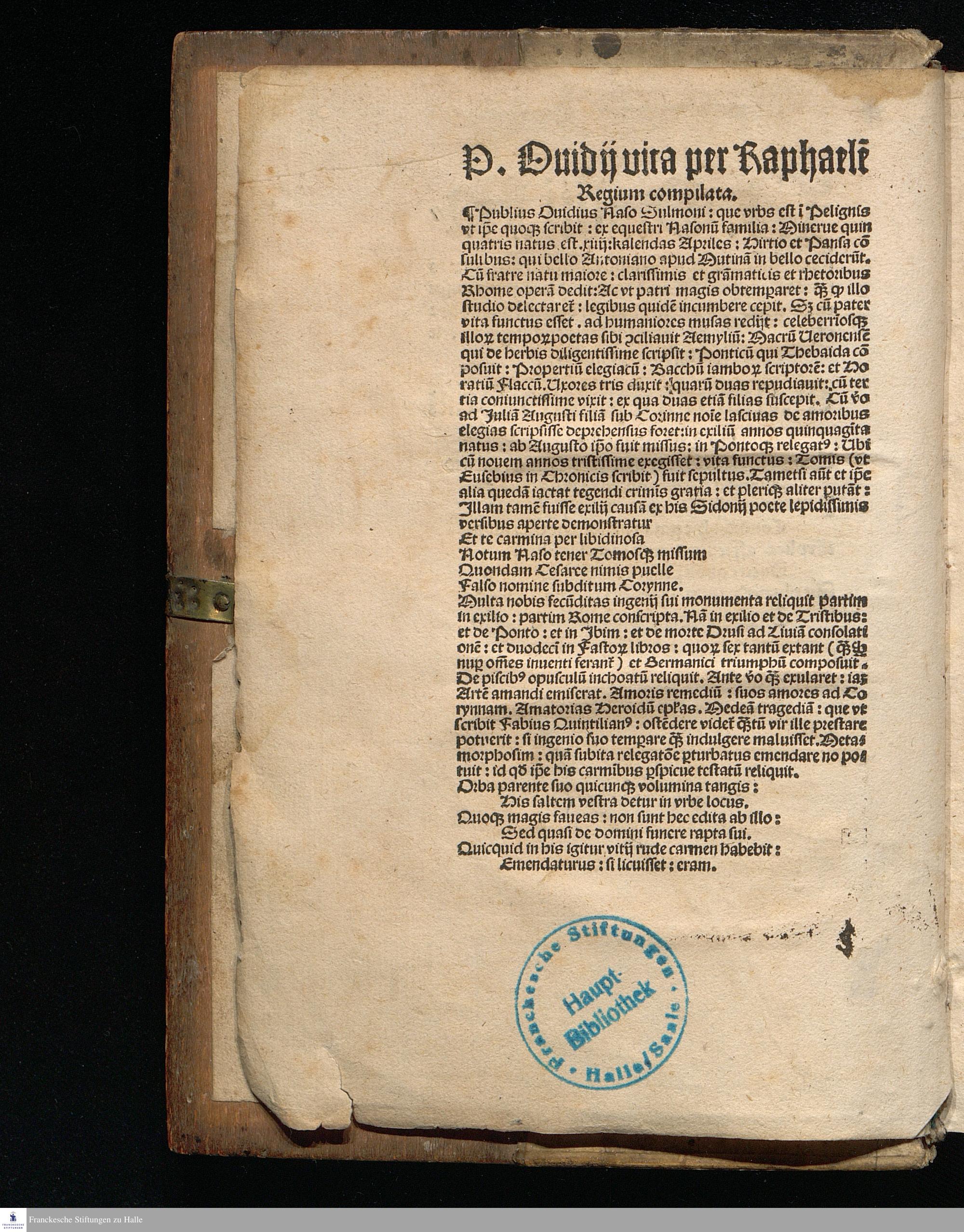 P. Ouidij Na=||sonis Sulmonensis Heroidu[m] diuersaru[m] ep[isto]le/ Quas || poeta ille ingeniosissimus teneris adhuc annis auspi||catus est/ Opus p[ro]fecto varium: disertu[m]: multiplex: || copiosum/ Affectus vtriusq[ue] sexus eruditissime ac ele||gantissime exprimens. || M. Andreas Epistates Deliti || anus Ad Lectorem. || ...
