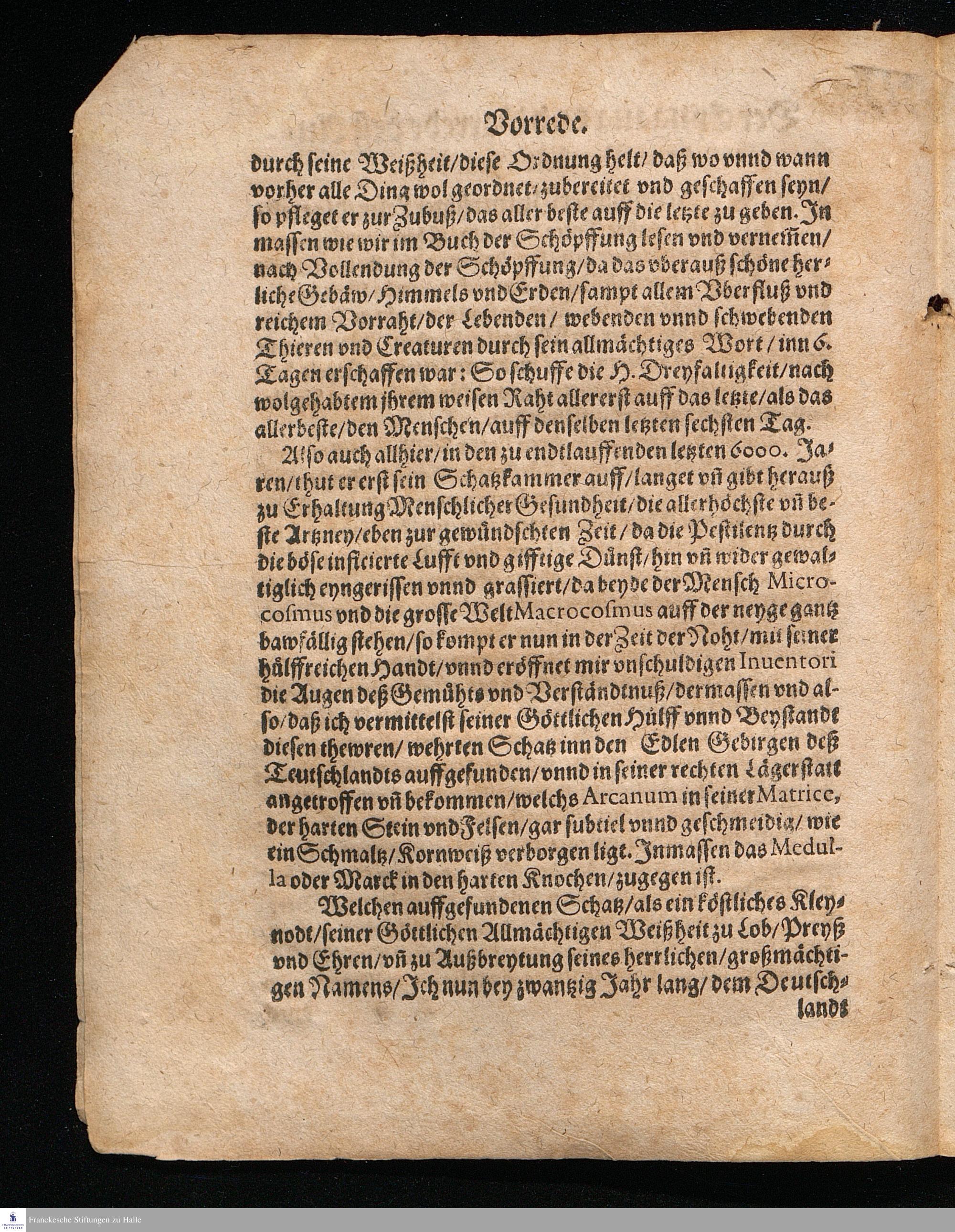 Nützlicher vnnd Nothwendiger Bericht: || Wie man in diesen ge=||fährlichen Sterbensläufften/ wider die || Pestilentz/ die wahre Terram Sigillatam || gebrauchen soll/ Gestellt vnd verordnet/ || Durch den Ehrnvesten/ Hochgelarten/ im || Liecht der Natur hocherleuchten Philosophum, || Herrn Ieremiam Eysenmenger/ Der hochgelobten Artz=||ney Doctorn/ bestellten vnnd verordneten || Physicum, zu Heylbrun. || Welche Hülffreiche Terram Sigillatam, vnnd hohen Antido-||tum, Der Ehrn: vnd weitberümbte Naturkündiger/ Andreas Bertholdus || von Oschatz/ der verborgenen Arcanen/ im Gebirge Bergmeister/ erstlich || auff dem Kupfferberg/ vnd andern Orten mehr/ erfunden/ nach rechtschaf=||fener Kunst præpariert/ gradieret vnd Exaltieret: Vnd nunmehr/ nach vie=||len bewehrten Proben/ beweißlichen vnnd gewissen Zeugnussen/ jüngsten/ auffgehaltenem Reichßtage zu Regenspurg/ denn Ständen vnnd || Gliedern/ deß Heyligen Römischen Reichs/ in vnterthänig=||keit/ præsentirt/ publiciert/ vnnd an deß Tags || Liecht herfür gebracht hat. ||