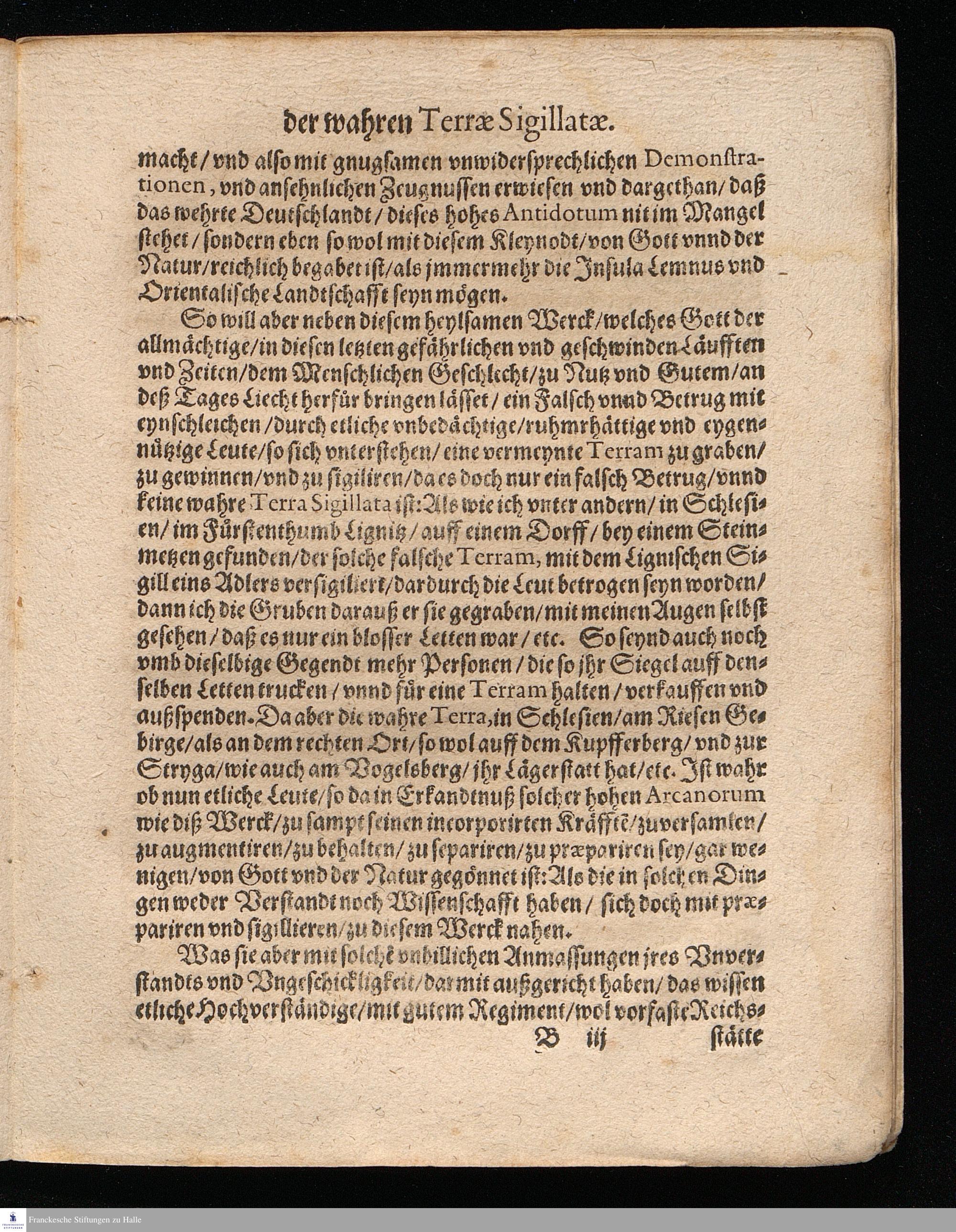 Nützlicher vnnd Nothwendiger Bericht: || Wie man in diesen ge=||fährlichen Sterbensläufften/ wider die || Pestilentz/ die wahre Terram Sigillatam || gebrauchen soll/ Gestellt vnd verordnet/ || Durch den Ehrnvesten/ Hochgelarten/ im || Liecht der Natur hocherleuchten Philosophum, || Herrn Ieremiam Eysenmenger/ Der hochgelobten Artz=||ney Doctorn/ bestellten vnnd verordneten || Physicum, zu Heylbrun. || Welche Hülffreiche Terram Sigillatam, vnnd hohen Antido-||tum, Der Ehrn: vnd weitberümbte Naturkündiger/ Andreas Bertholdus || von Oschatz/ der verborgenen Arcanen/ im Gebirge Bergmeister/ erstlich || auff dem Kupfferberg/ vnd andern Orten mehr/ erfunden/ nach rechtschaf=||fener Kunst præpariert/ gradieret vnd Exaltieret: Vnd nunmehr/ nach vie=||len bewehrten Proben/ beweißlichen vnnd gewissen Zeugnussen/ jüngsten/ auffgehaltenem Reichßtage zu Regenspurg/ denn Ständen vnnd || Gliedern/ deß Heyligen Römischen Reichs/ in vnterthänig=||keit/ præsentirt/ publiciert/ vnnd an deß Tags || Liecht herfür gebracht hat. ||