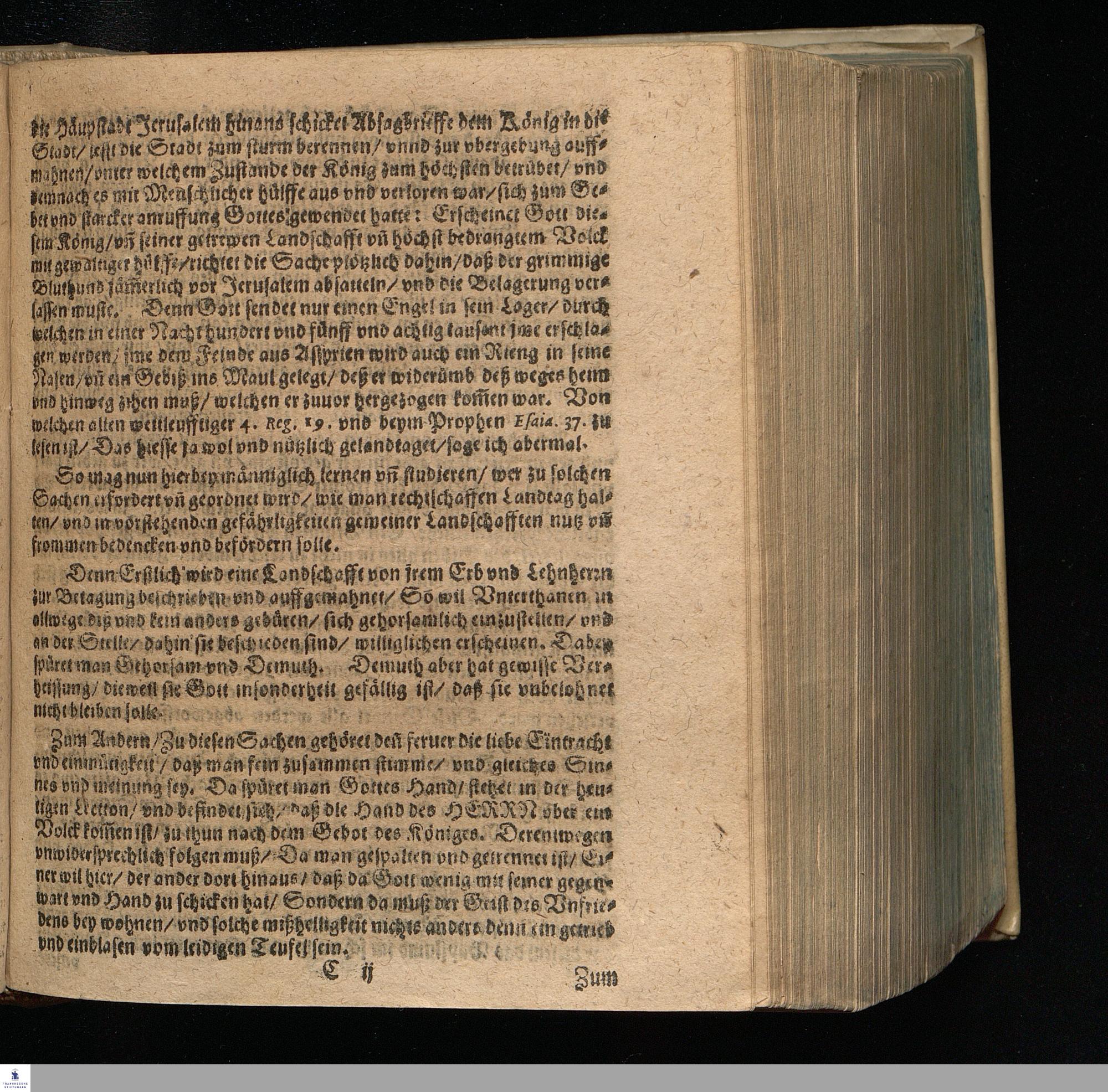 LandTags Predigt/ || Wie Christliche La[n]d||schafften/ auff ergangene Ausschrei=||ben jhrer gnädigen vnd Landsfürstlichen Ober=||keit/ sich auff gemeinen LandTägen: Bevorab bey || gegenwertiger vorstehender Gefahr gemeiner Chri=||stenheit/ wegen des Türcken/ bezeigen || vnd verhalten sollen/ || Gehalten || Zu Weymar in der Schlosskirchen/ || auff dem angestalten LandTag daselbsten/ || 6. Decembr. Anno 1596. || Durch || GEORGIVM MYLIVM, || D. vnd Professorn zu || Jhena. ||
