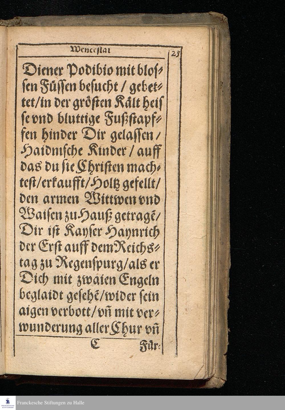 Geistliches Frolocken der || Kron Behaim. || Das ist/ || SChöne/ aus=||erlesene/ Andechtige vnd || sonderlich aber/ dieser gefährlichen Zeit || der Pestilentz/ gar Heylsame vnd Noth=||wendig Gebet/ zu den Fürnemsten H. Pa=||tronen/ darinnen auch auffs kürtzist jhr || jedes Leben vnd Wandel begrieffen/ alles || auff vieler Guthertzigen Christen an=||suchen/ in diese Form gebracht. || Durch || Den Ehrwirdige[n] vn[d] Edlen Herrn || Georgen Bartholdum Pontanum von || Braitenberg/ ThumbProbsten zu Prag || zu Olmutz vnd Budiss. Can. Com. || Pal. Proth. Apost. &c. || ... ||