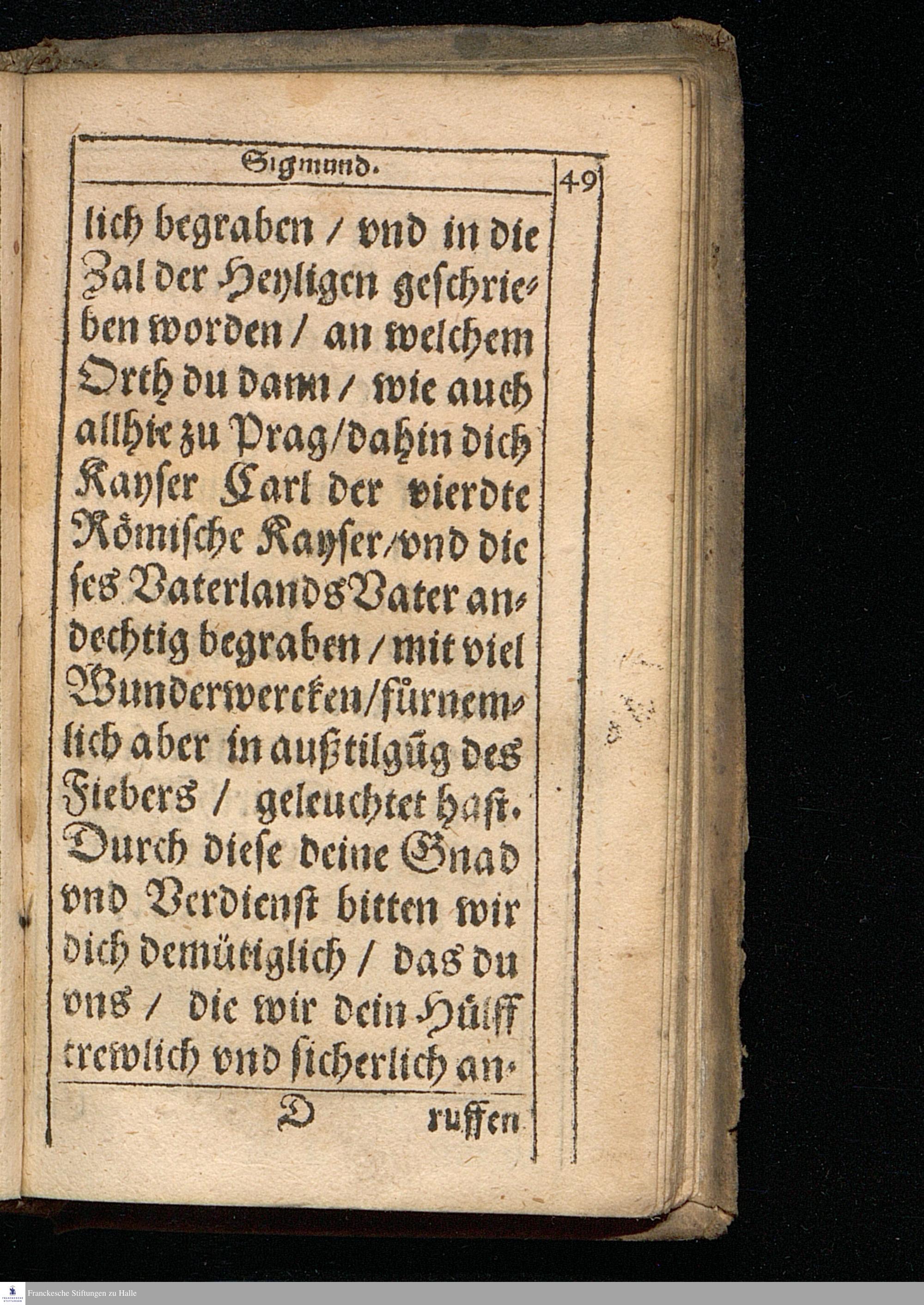 Geistliches Frolocken der || Kron Behaim. || Das ist/ || SChöne/ aus=||erlesene/ Andechtige vnd || sonderlich aber/ dieser gefährlichen Zeit || der Pestilentz/ gar Heylsame vnd Noth=||wendig Gebet/ zu den Fürnemsten H. Pa=||tronen/ darinnen auch auffs kürtzist jhr || jedes Leben vnd Wandel begrieffen/ alles || auff vieler Guthertzigen Christen an=||suchen/ in diese Form gebracht. || Durch || Den Ehrwirdige[n] vn[d] Edlen Herrn || Georgen Bartholdum Pontanum von || Braitenberg/ ThumbProbsten zu Prag || zu Olmutz vnd Budiss. Can. Com. || Pal. Proth. Apost. &c. || ... ||