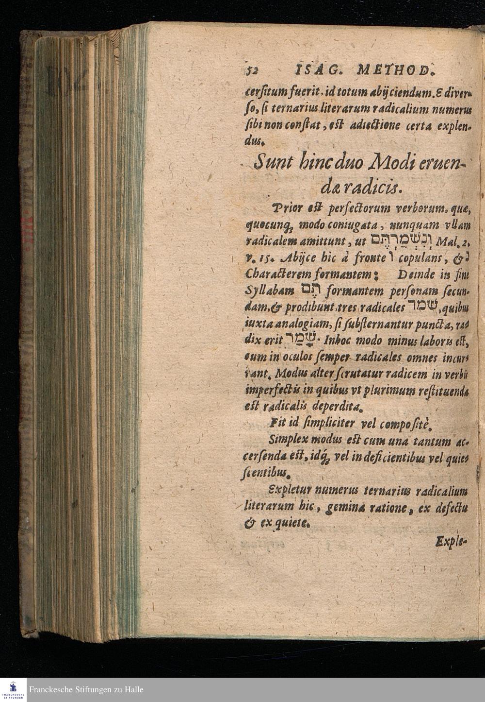 ISAGOGE || GRAMMA=||TICA IN HEBRÆAM || linguam edita || ab AMBROSIO REV-||denio Theologiæ Doctore, ac || Professore in Academia || Ienensi. || Cui adiectus est modus, quo radi-||ces apud Hebræos investigari || expeditè possunt. ||
