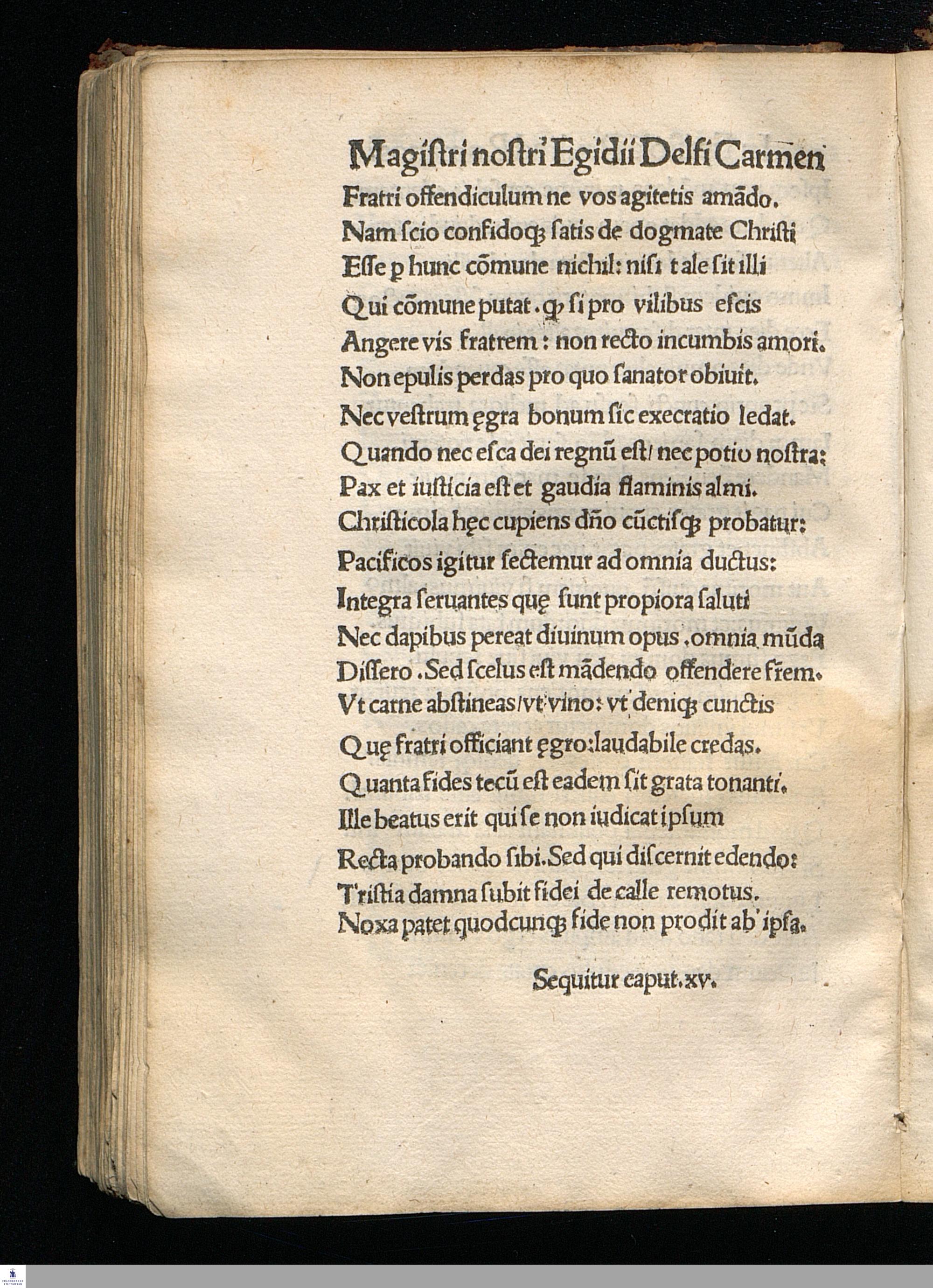 Ep[isto]la diui Pau=||li ad Romanos ab Egidio delpho sa=||cræ theologiæ p[ro]fessore clarissimo de=||ca[n]tata. In cuius com[m]e[n]dationem est || Tetrasticon Ascensianu[m] ad lectorem: || Vana superuacui si te monumenta laboris || Ceperunt fucis illita suauiloquis: || Hoc cole lector op[erum]: vel Paulo præside dignum: || Quo cedunt Delpho delphica prisca nouo. || ...
