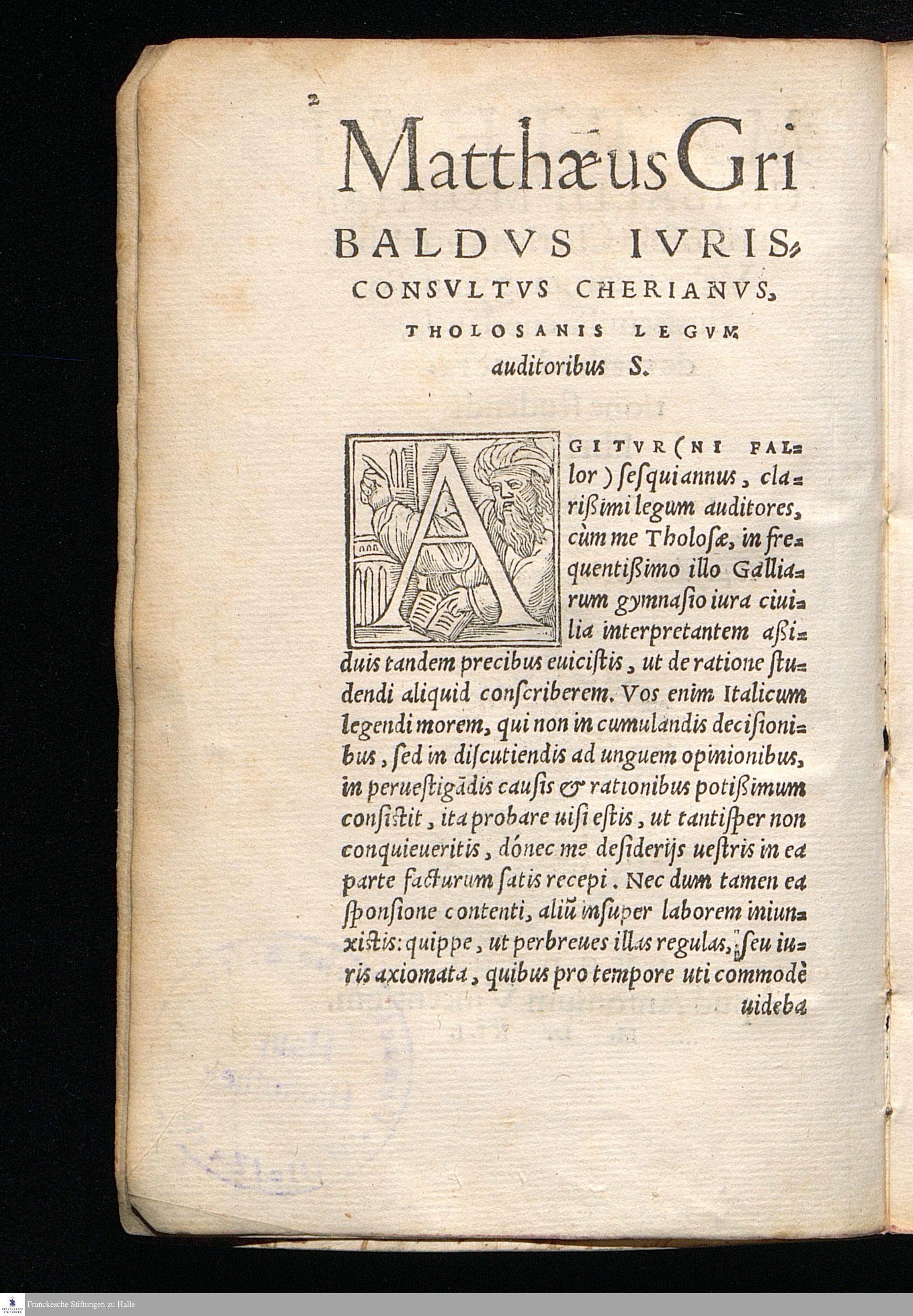MATTHÆI || GRIBALDI MOPHAE || Iurisco[n]sulti Cheriani, in celebri || Valentinorum gymnasio || iura ciuilia enodantis, || de methodo ac ra=||tione studendi || libri tres. || Lege quisquis ingenio delectaris, || & fruere. || ... ||