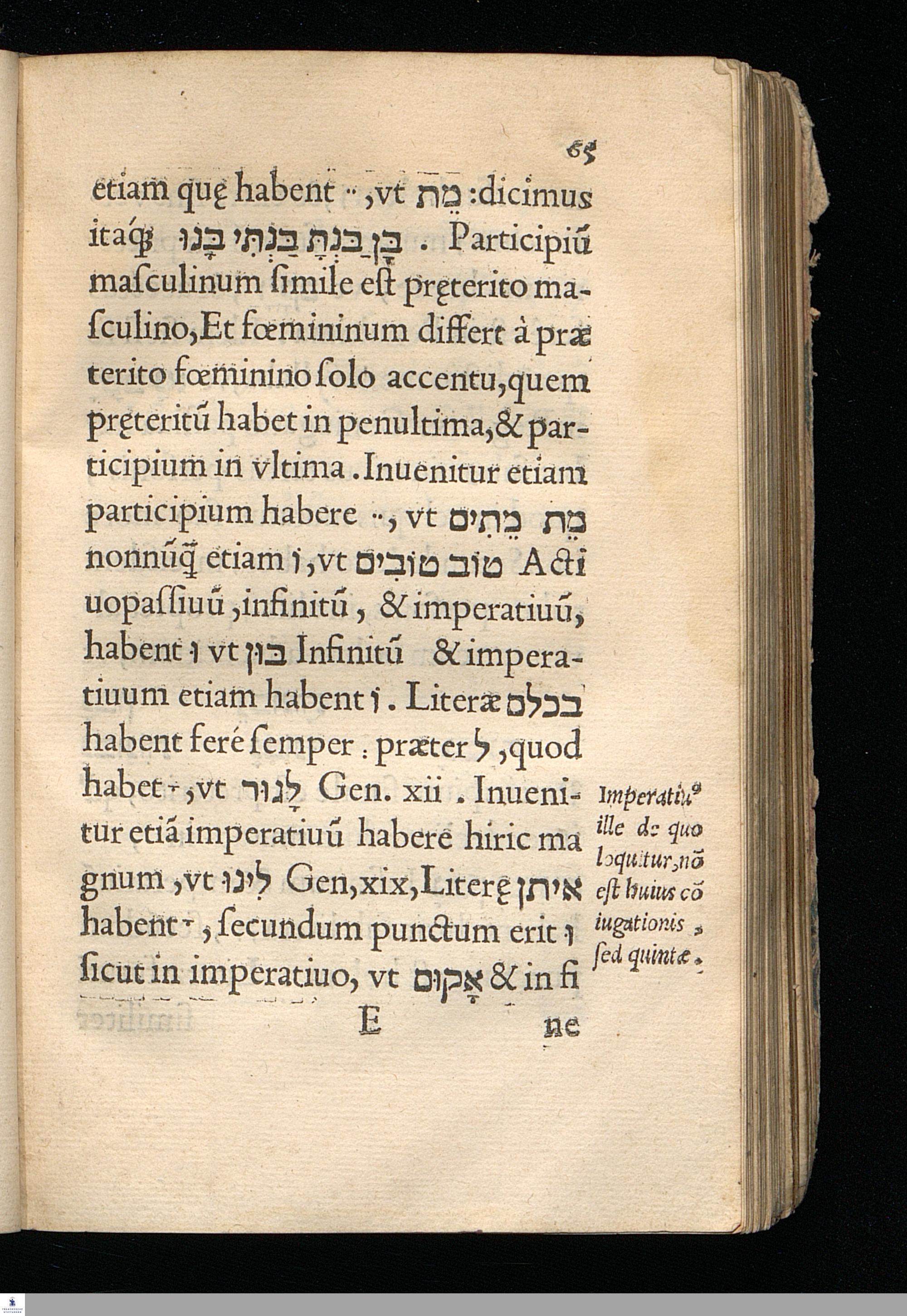 EX VARIIS || LIBELLIS ELIAE || gram[m]aticorum omnium doctissimi, || huc ferè congestu[m] est operâ Ioannis || Campensis, quidquid ad absoluta[m] || grammaticen Hebraicam || est necessarium. || Quod indicabit tabula qu[a]e in || fine adiu[n]gitur. ||