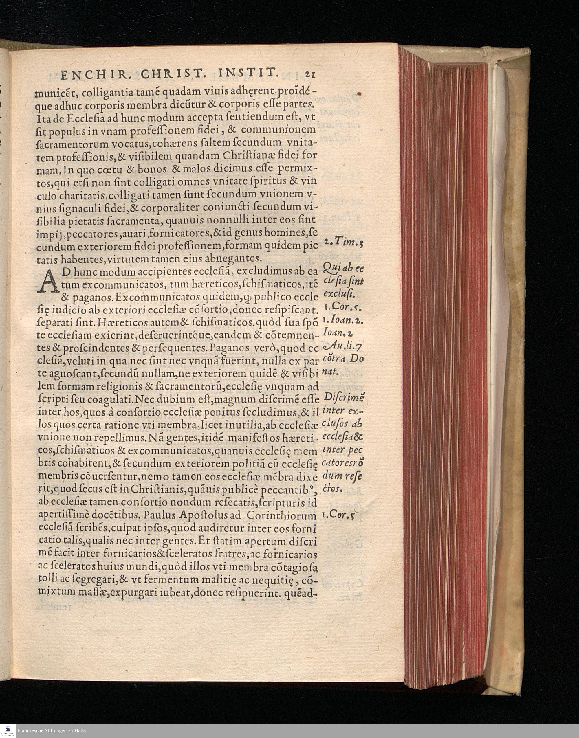 ENCHIRIDION || CHRISTIANAE INSTITV-||tionis in Concilio prouinciali Colo-||niensi editum, opus omnibus ve-||ræ pietatis cultoribus lon-||ge vtilissimum. || Quæ hoc volumine, in quatuor partes distribu-||to, contineantur, sequens pagina indicabit. || Hanc nostram editionem, candide lector, locis || multis castigatiore[m] tibi exhibere studuimus, || consultis (vbi referre visum est) cùm Germa-||nico tum Venetiano exemplaribus. ||